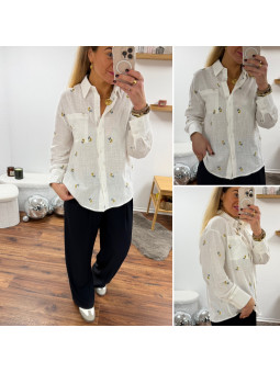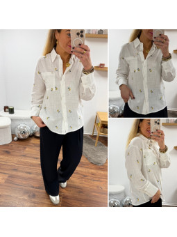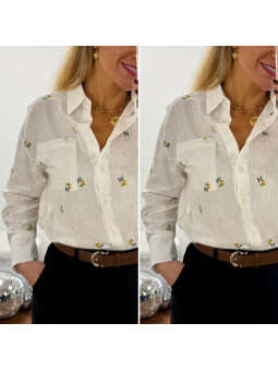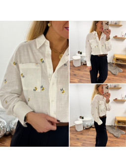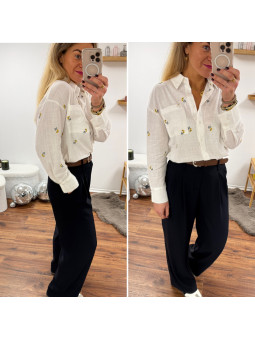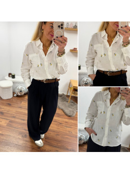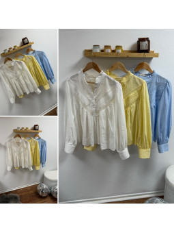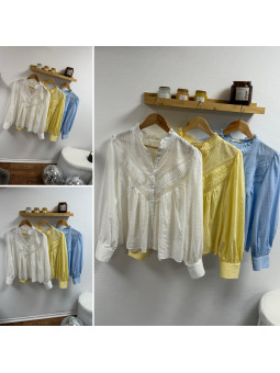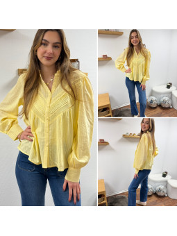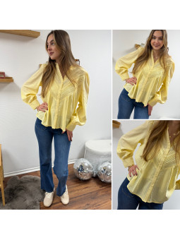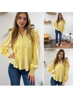 Chemise fluide jaune avec broderies et col volant Le SM...