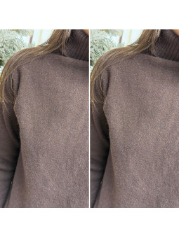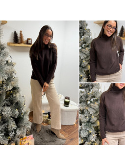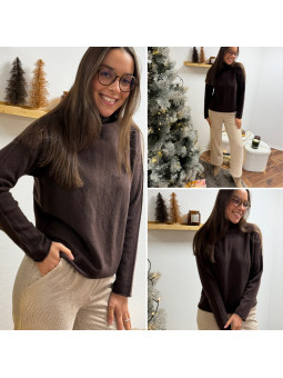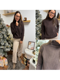 Pull col roulé chocolat avec col en maille côtelée Cet article...