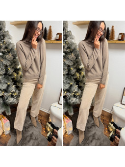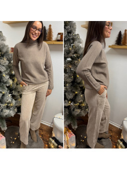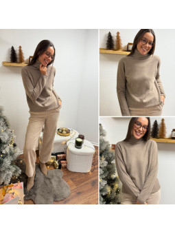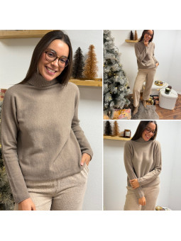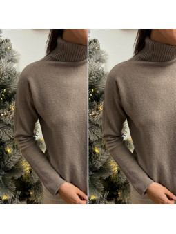 Pull col roulé taupe avec col en maille côtelée Cet article en...