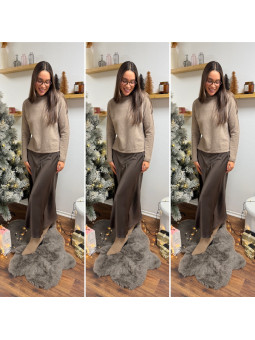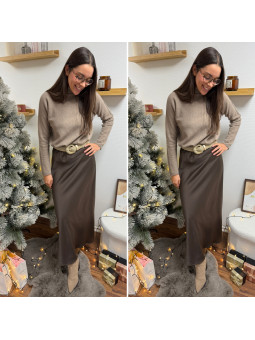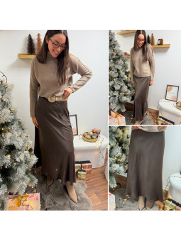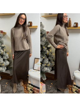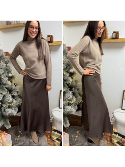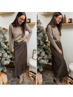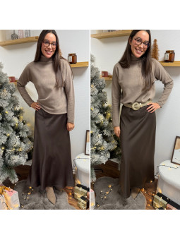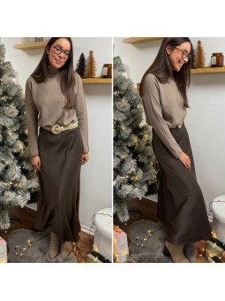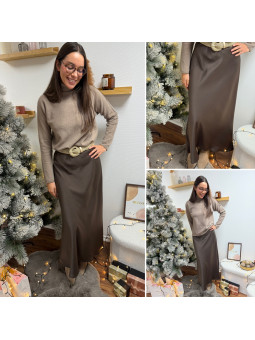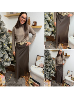 Jupe longue en satin chocolat Le SM équivaut au 36-38, le ML...