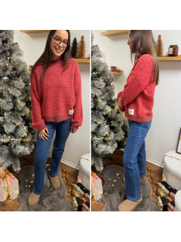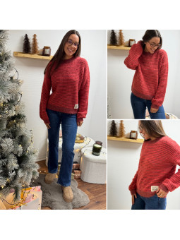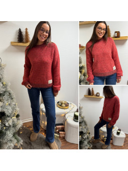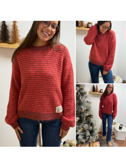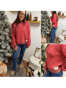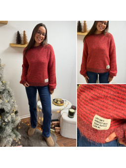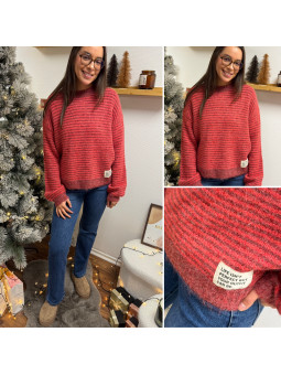 Pull rouge rayé avec inscription "Life isn't perfect but your...