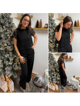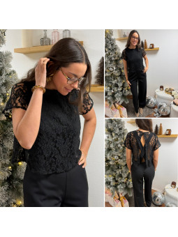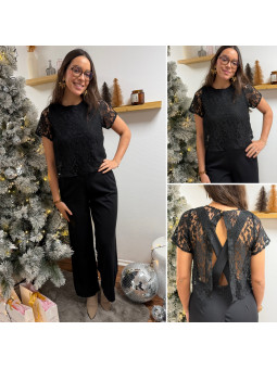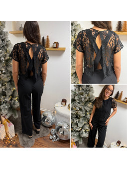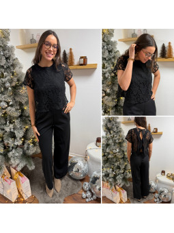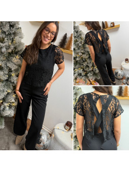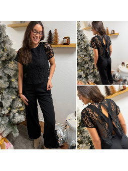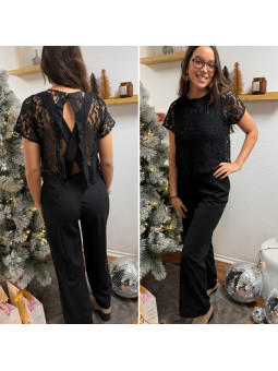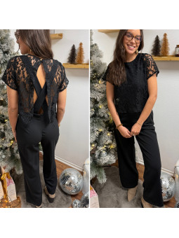 Combinaison pantalon noire dos nu avec bretelles croisées dans...