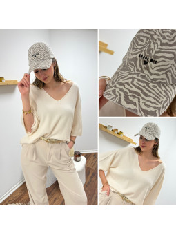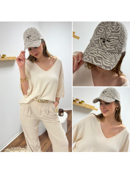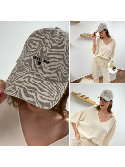 Casquette zébrée taupe avec logo "logo amore mio" 100% coton...