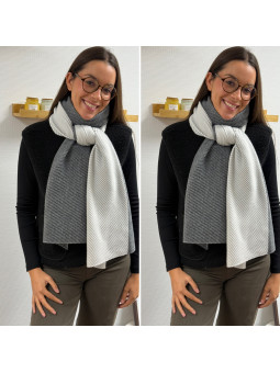 Grosse étole avec plissé fin grise et blanche 84% polyester et...