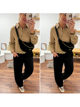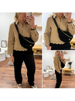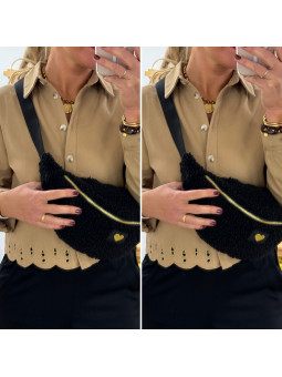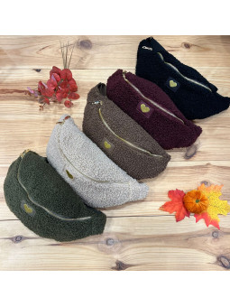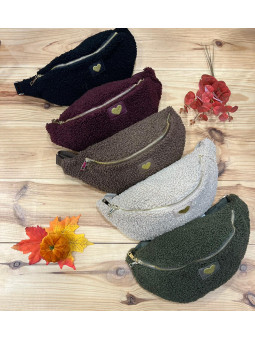 Sac banane moumoute beige avec petit coeur brodé doré 100%...