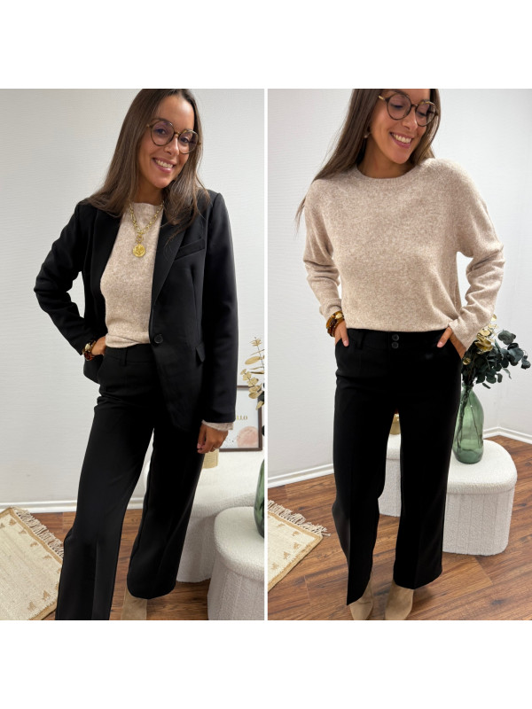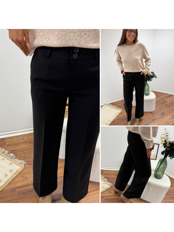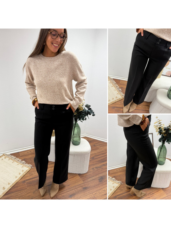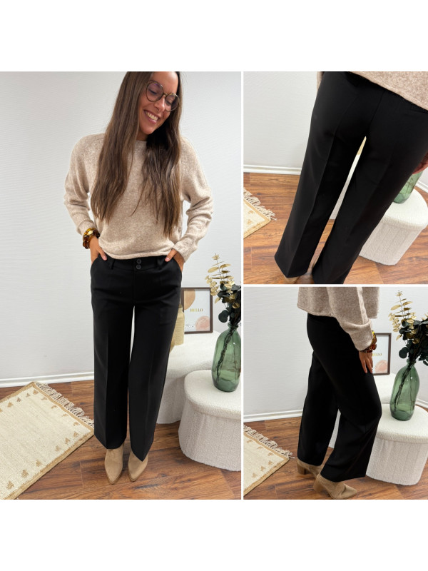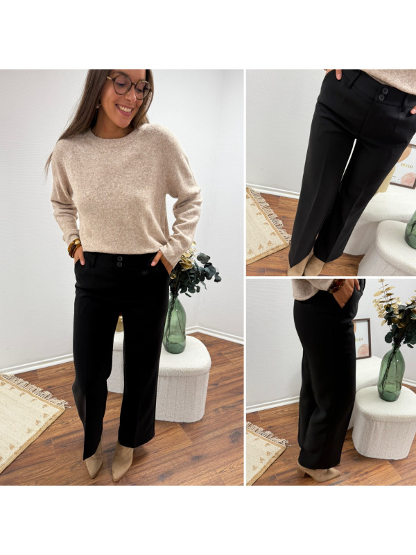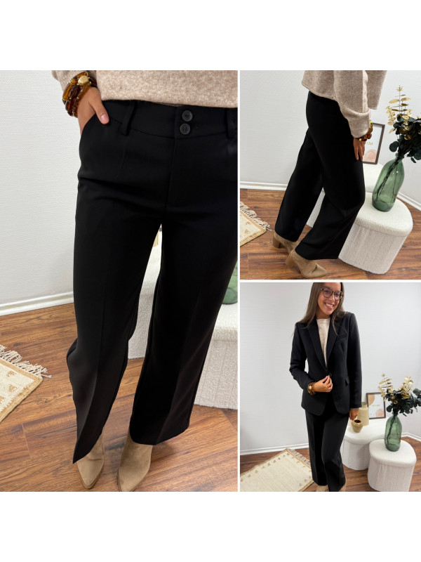 Pantalon de tailleur noir cintré avec deux boutons