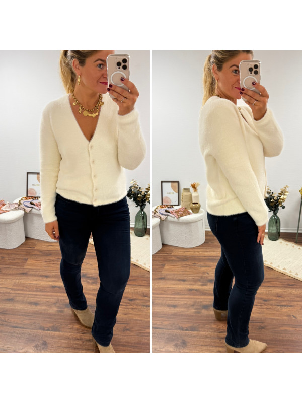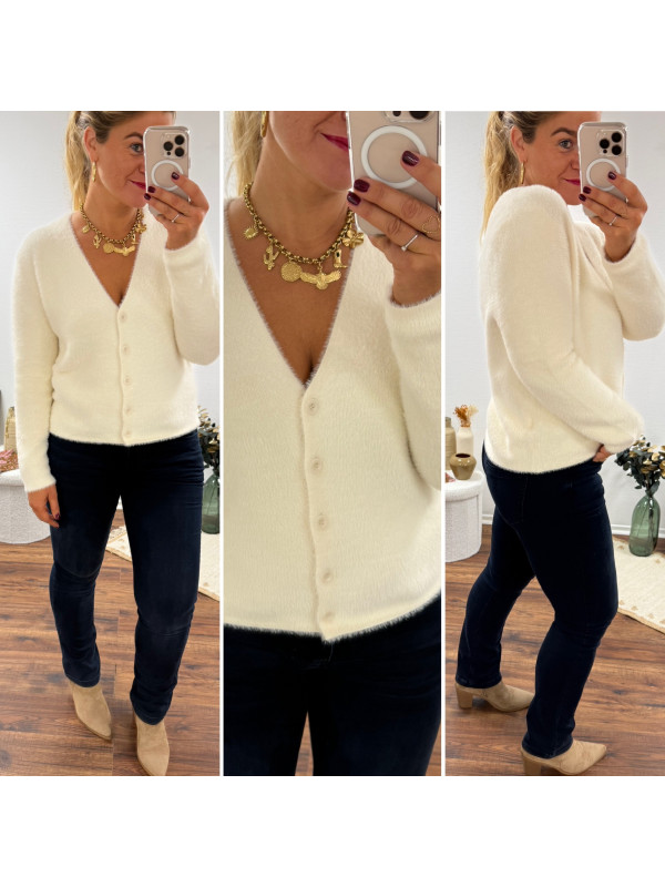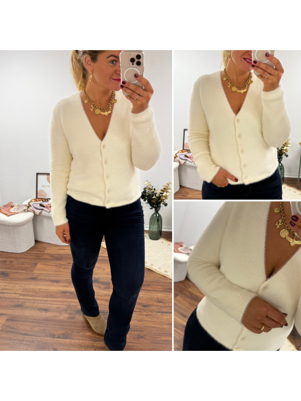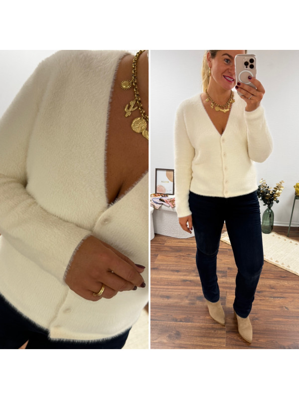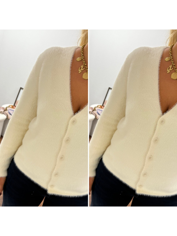 Gilet écru tout doux poilu col V