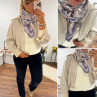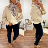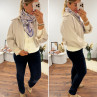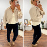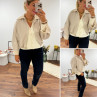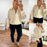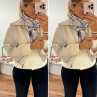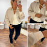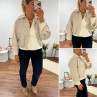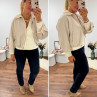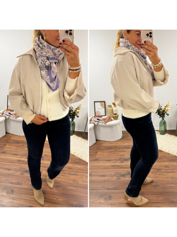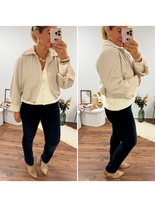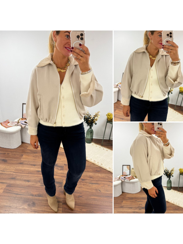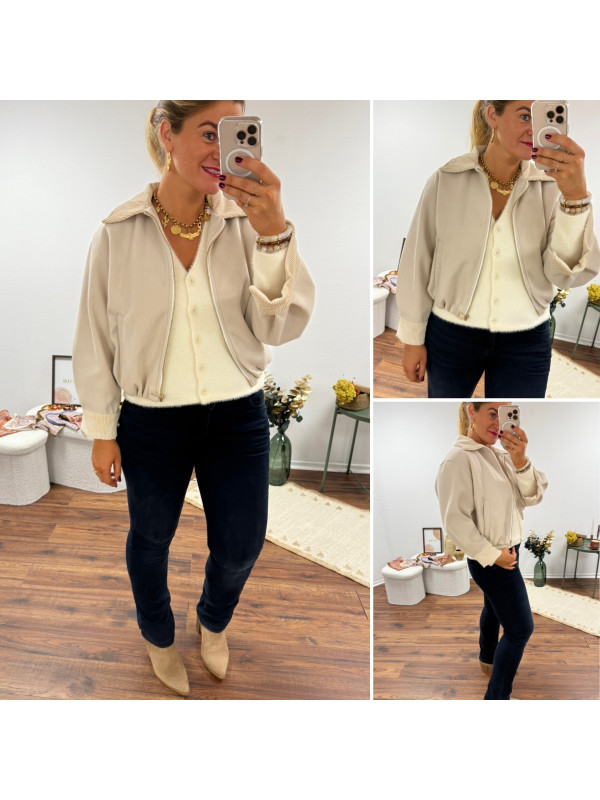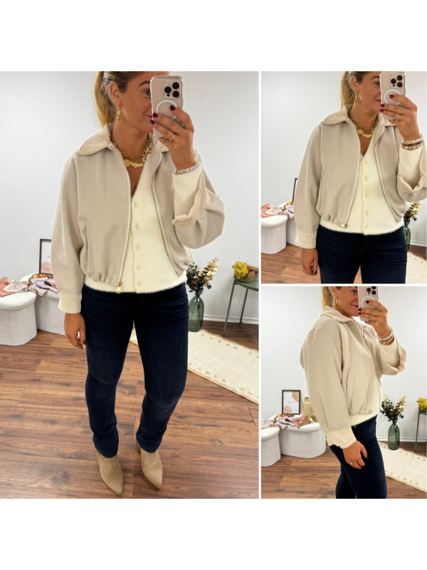 Veste courte beige froncée dans le bas avec col et poignets en velours