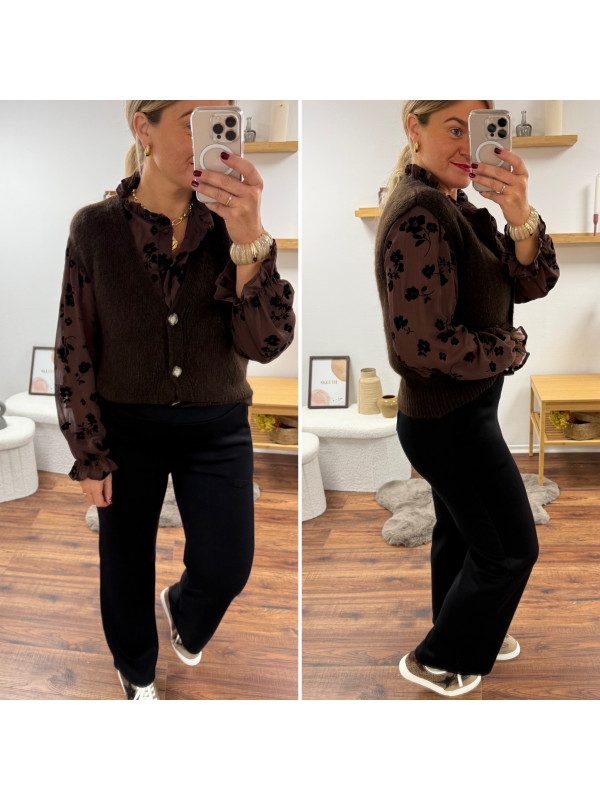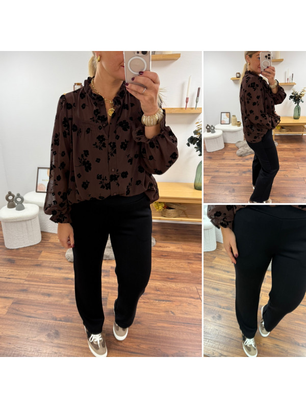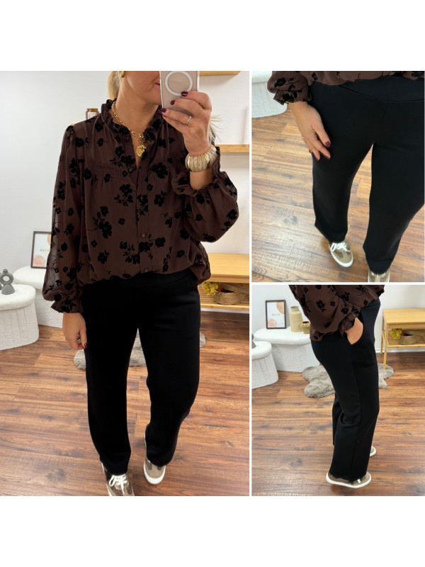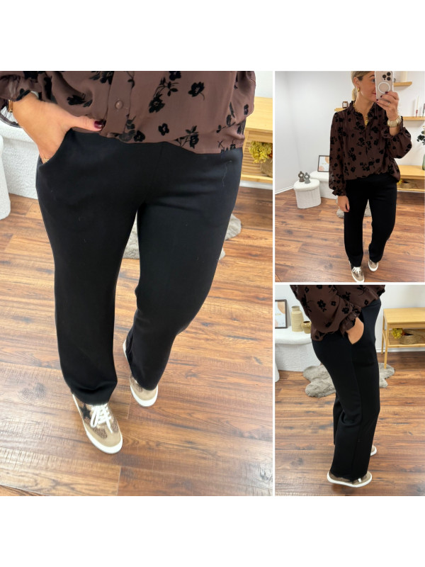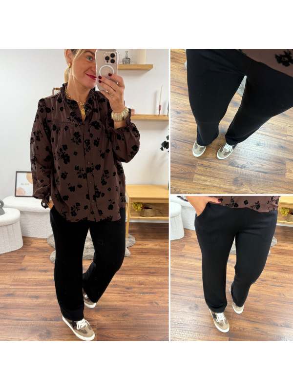 Pantalon noir souple tout doux fluide à taille élastiquée