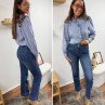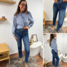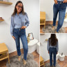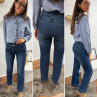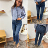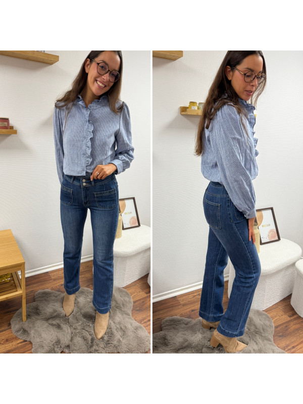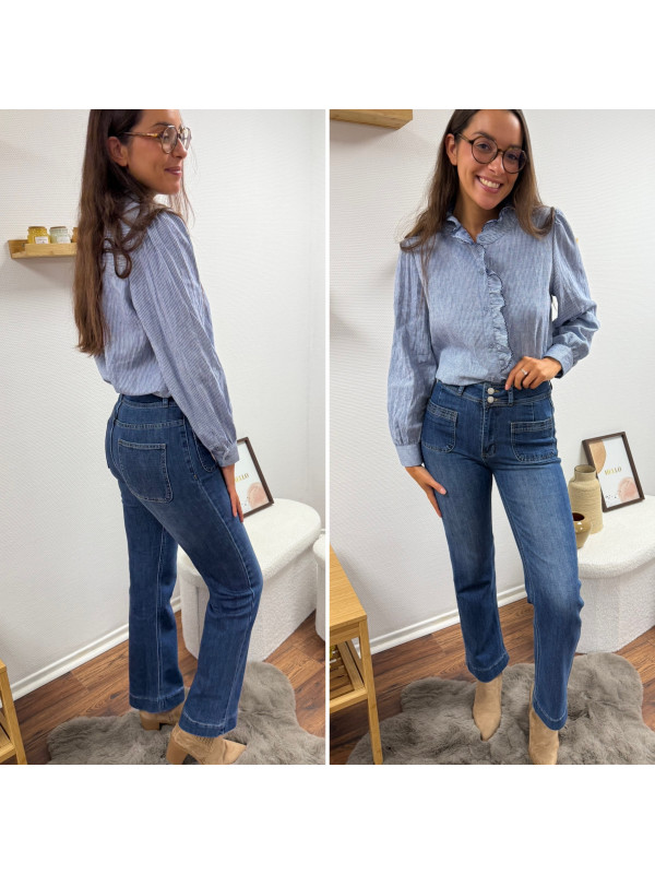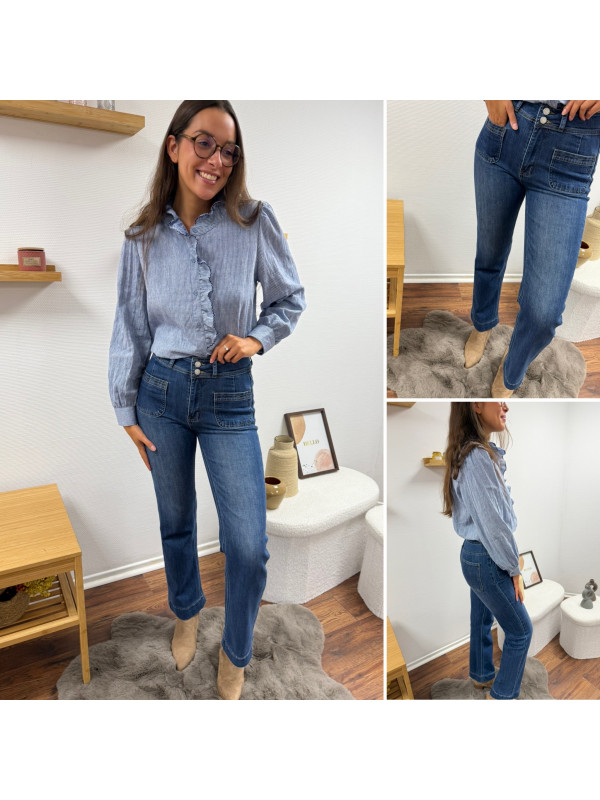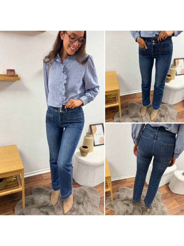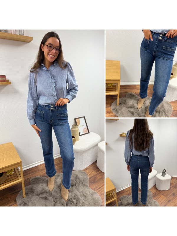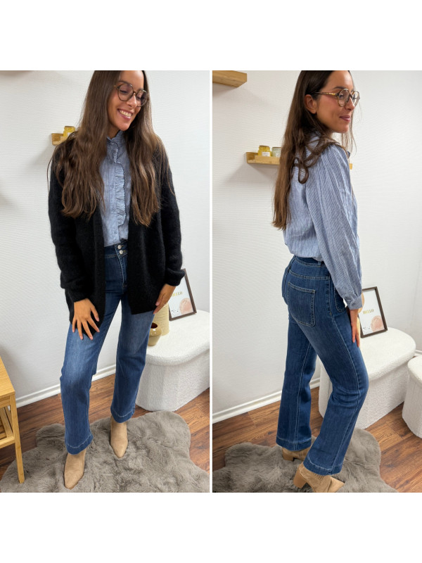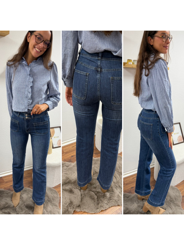 Jean wide leg bleu foncé très souple avec double boutons et poches plaquées