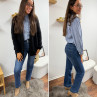 Le modèle mesure 1,73m et porte une taille 36.