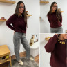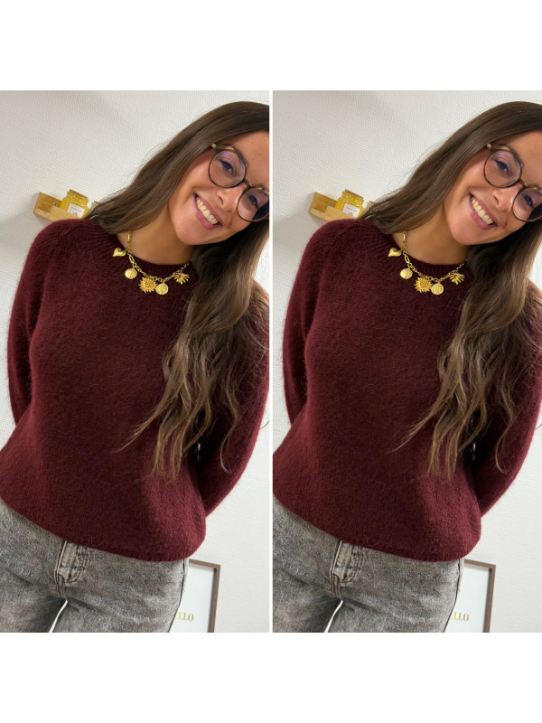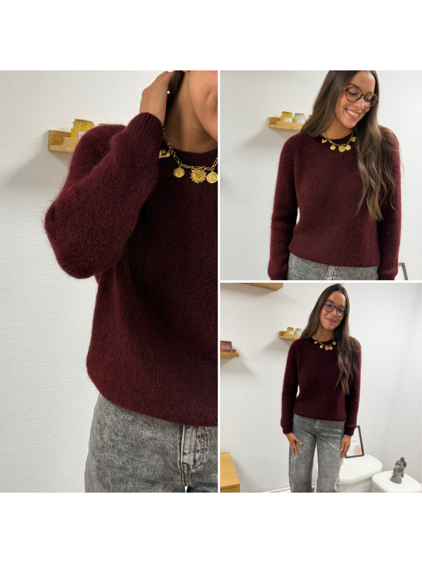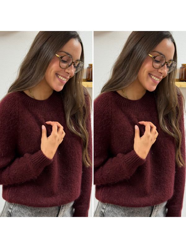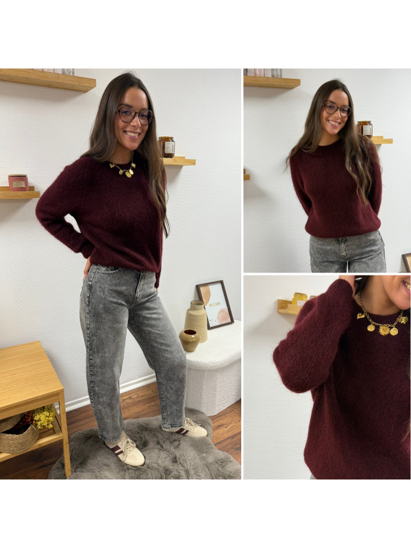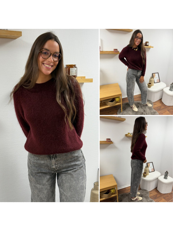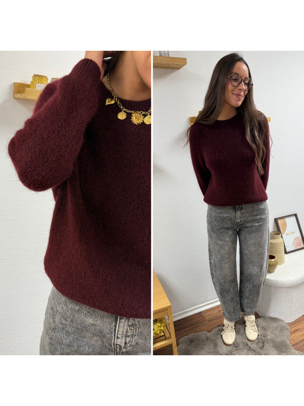 Pull col rond en alpaga bordeaux