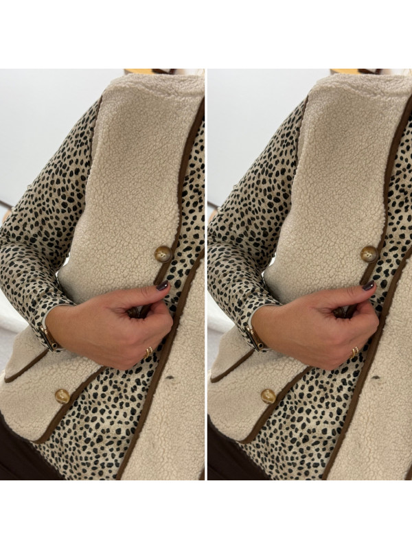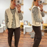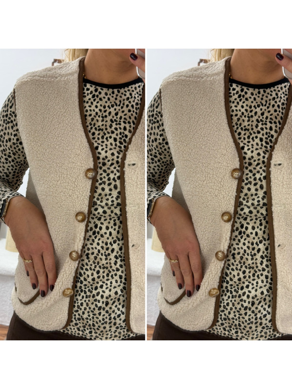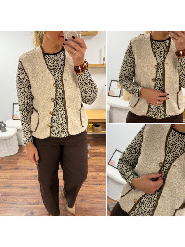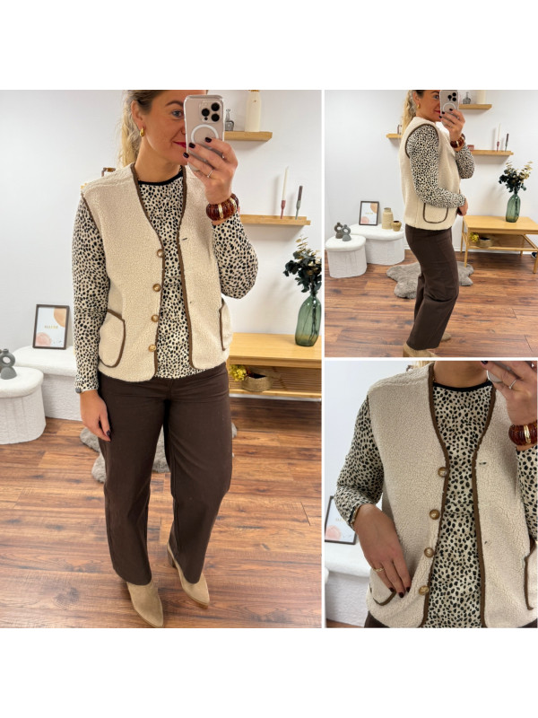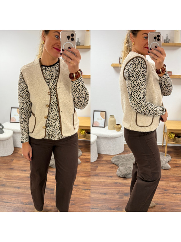 Gilet à bouclettes sans manches beige à rebords chocolat