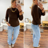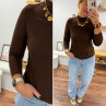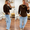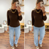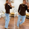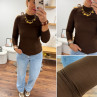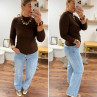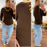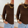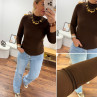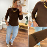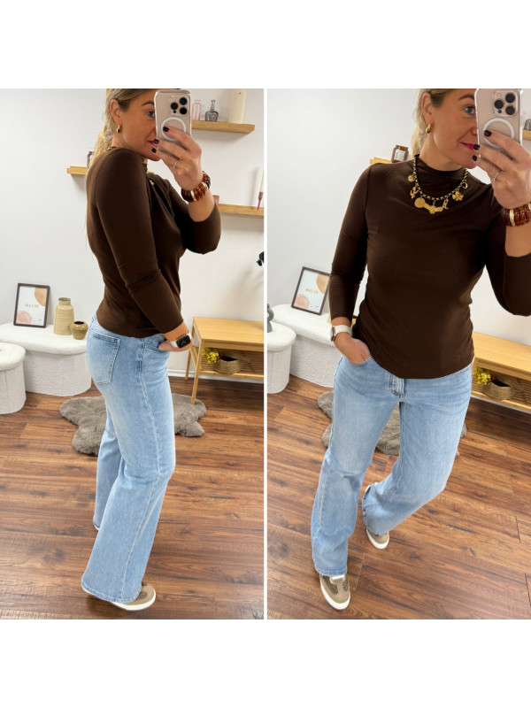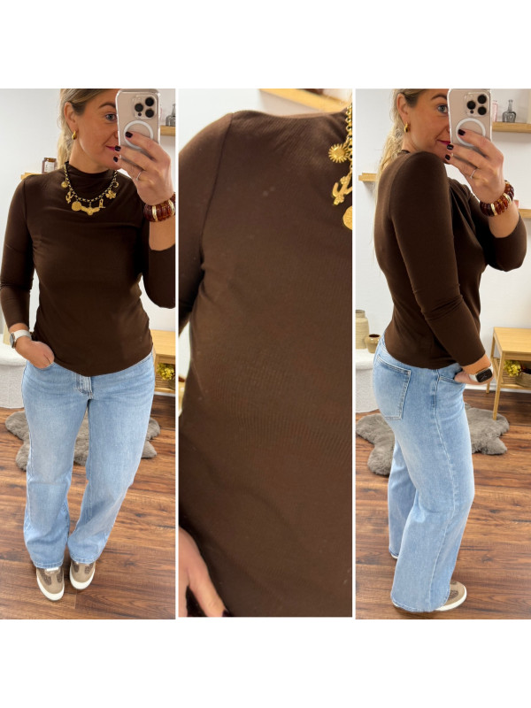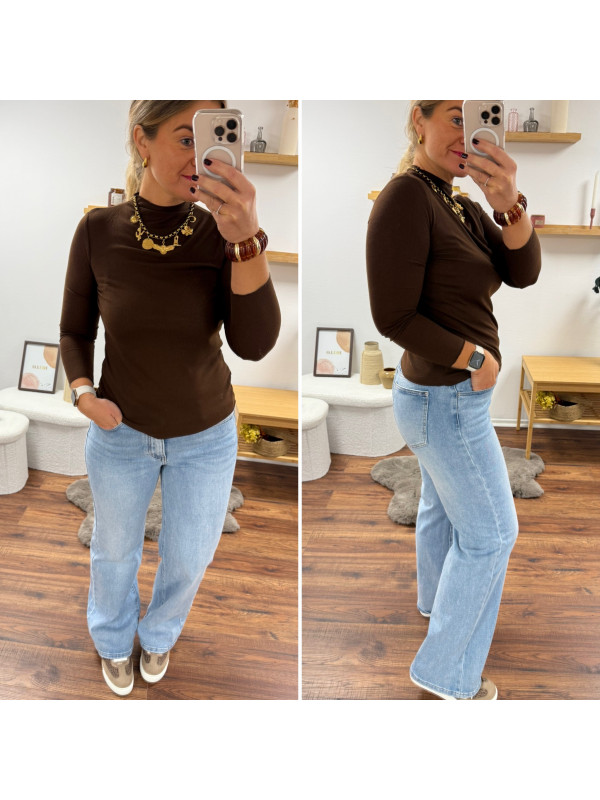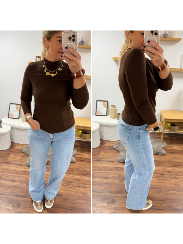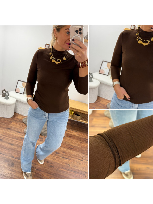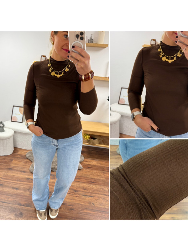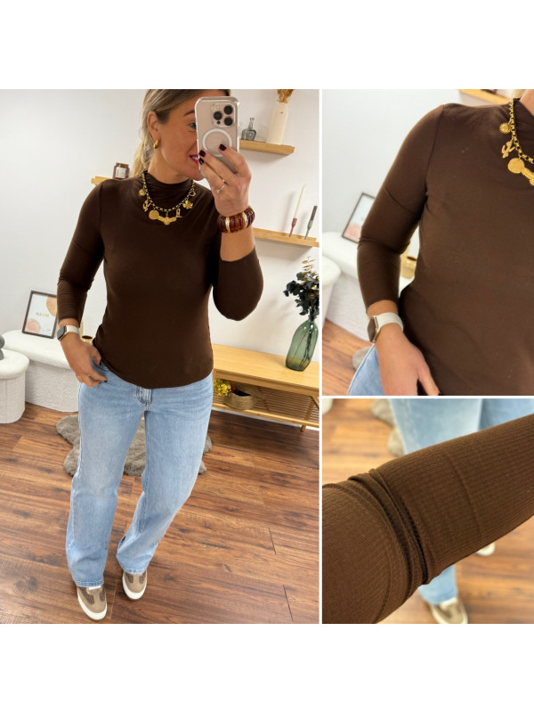 Tee shirt moulant seconde peau manches longues chocolat col légèrement montant