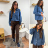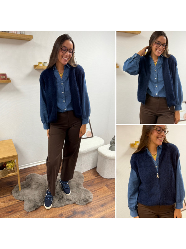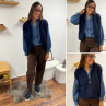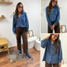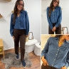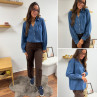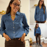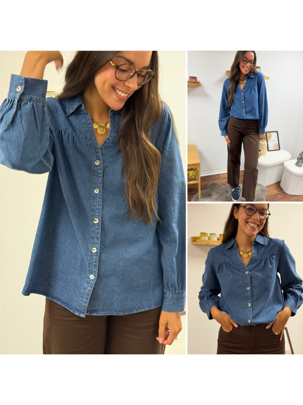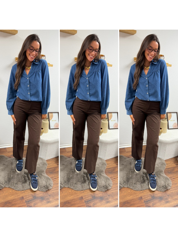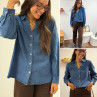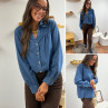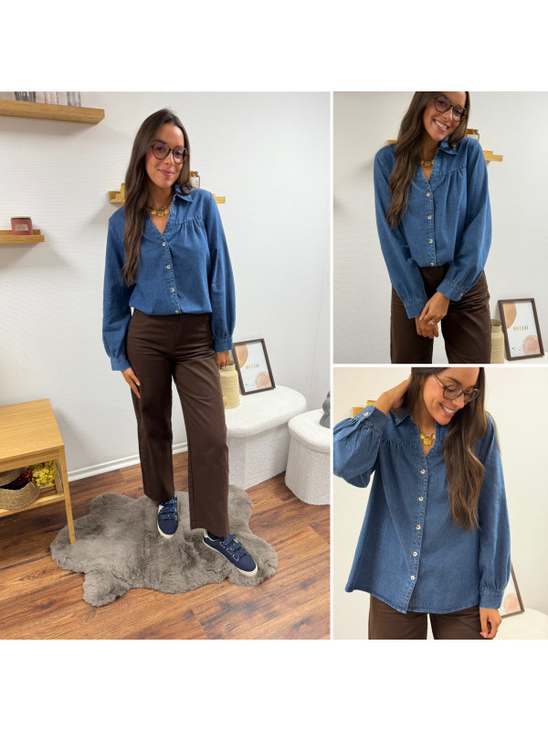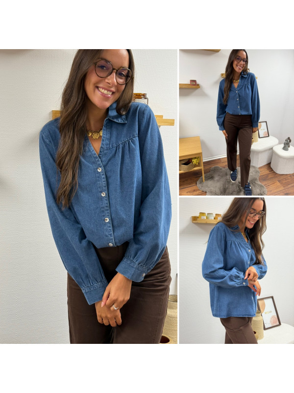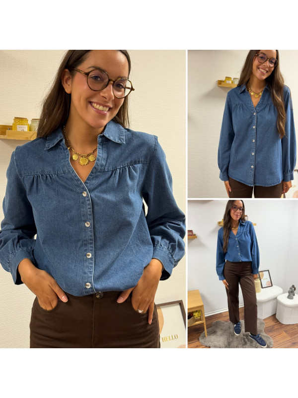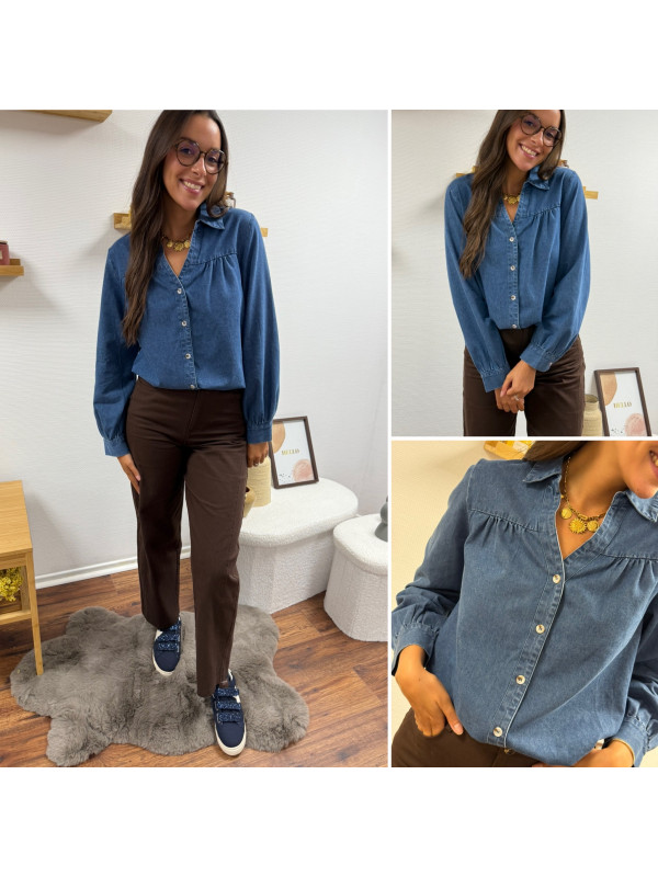 Chemise en col V en jean bleu foncé