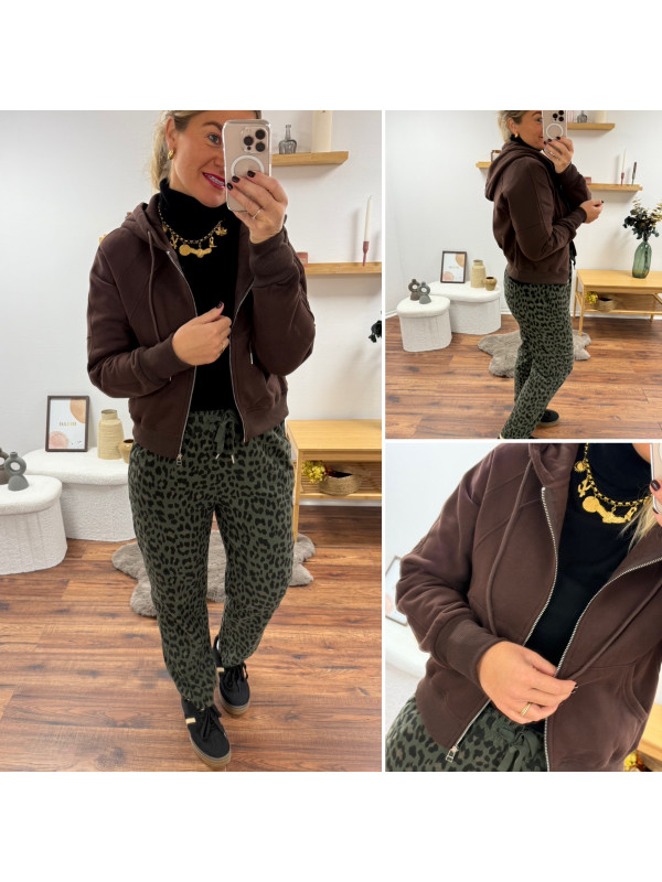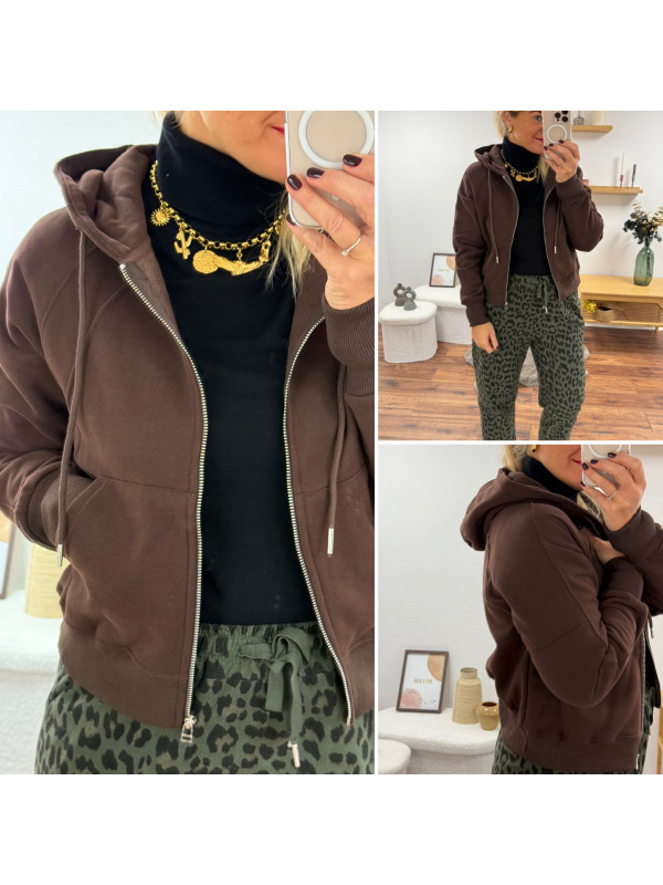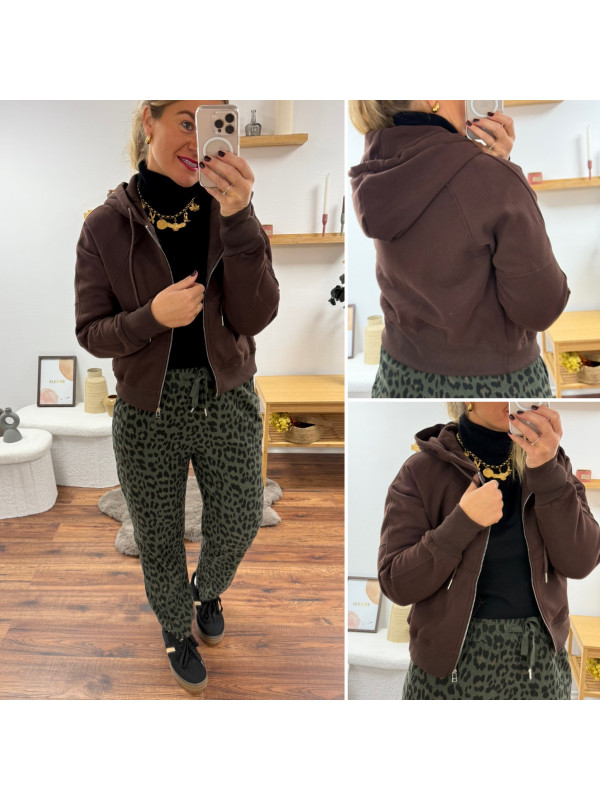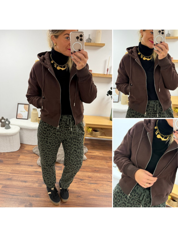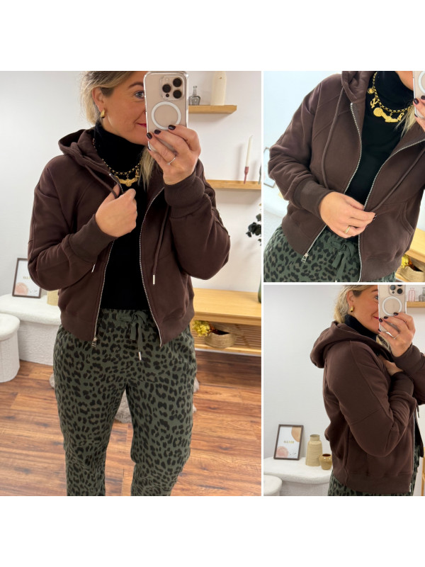 Gilet sweat à capuche chocolat bien chaud