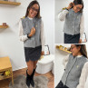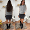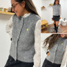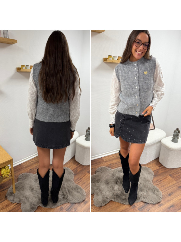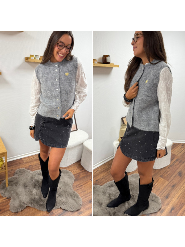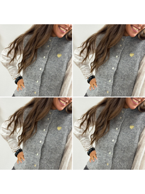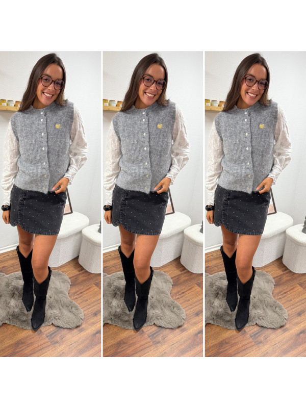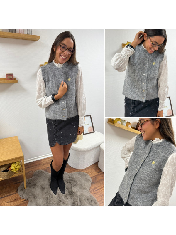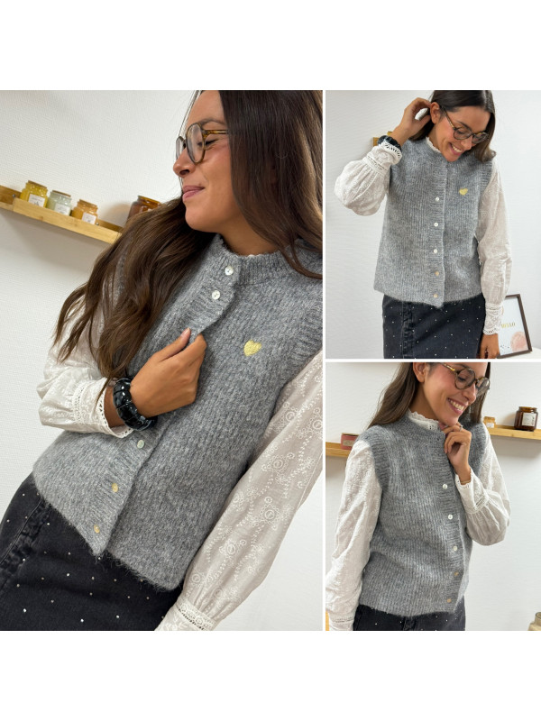Gilet sans manches avec coeur doré et boutons nacrés gris chiné
