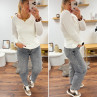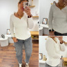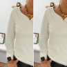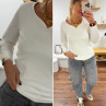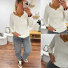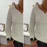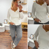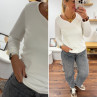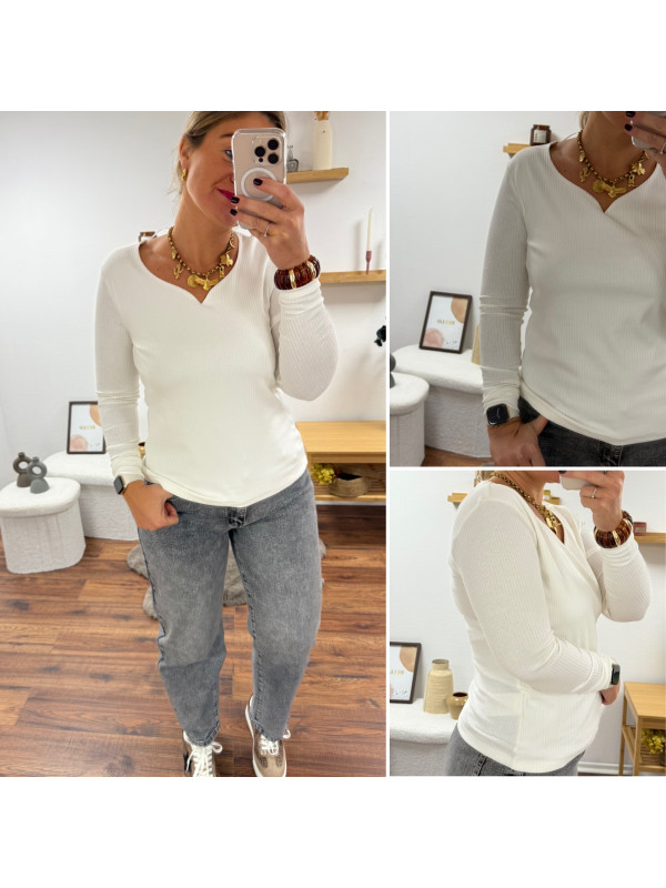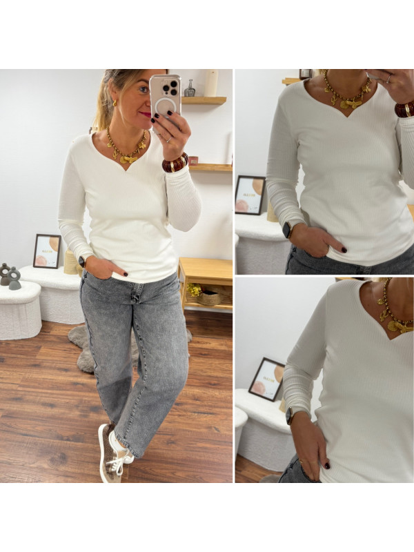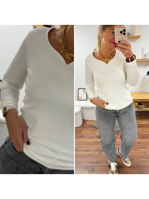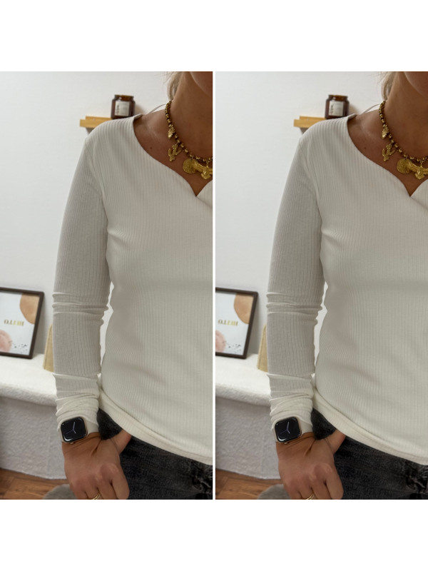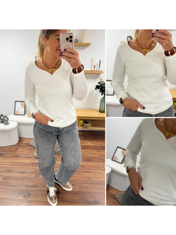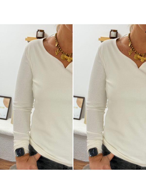 Tee shirt blanc manches longues tissu côtelé décolleté en forme de coeur (du 36 au 46)