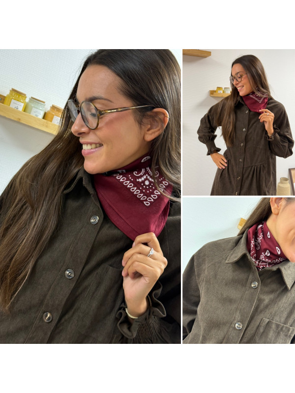 Petit foulard en coton façon bandana bordeaux