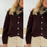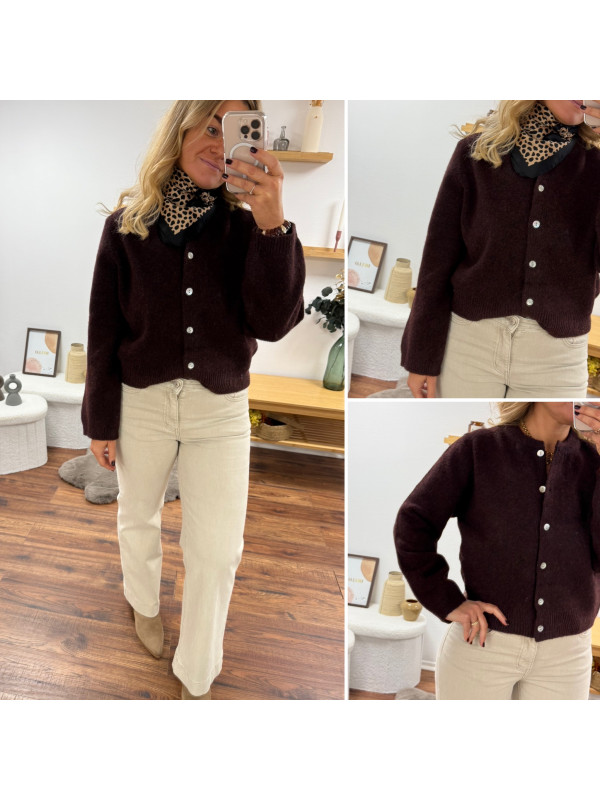 Gilet épais bordeaux/chocolat avec boutons nacrés et manches évasées