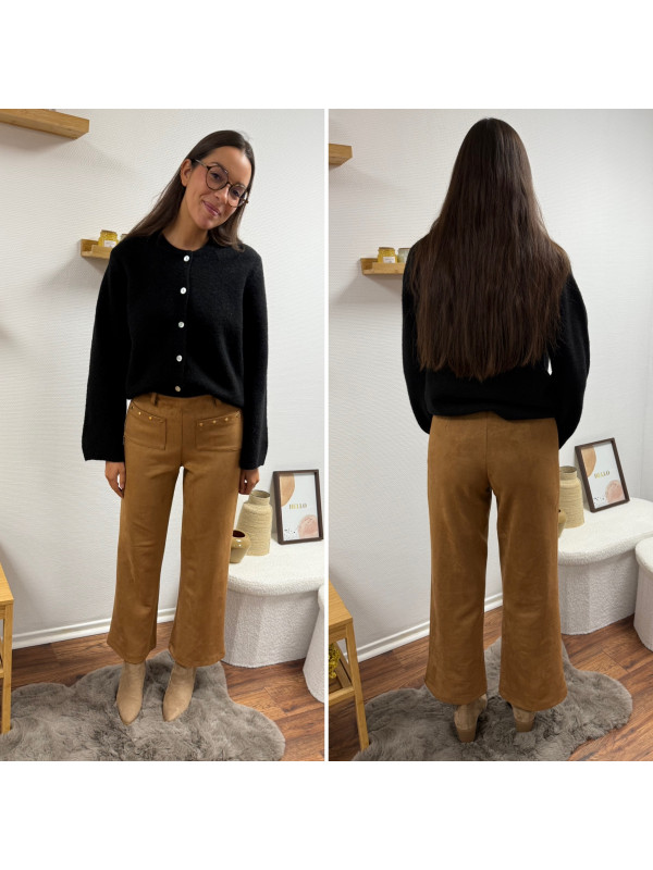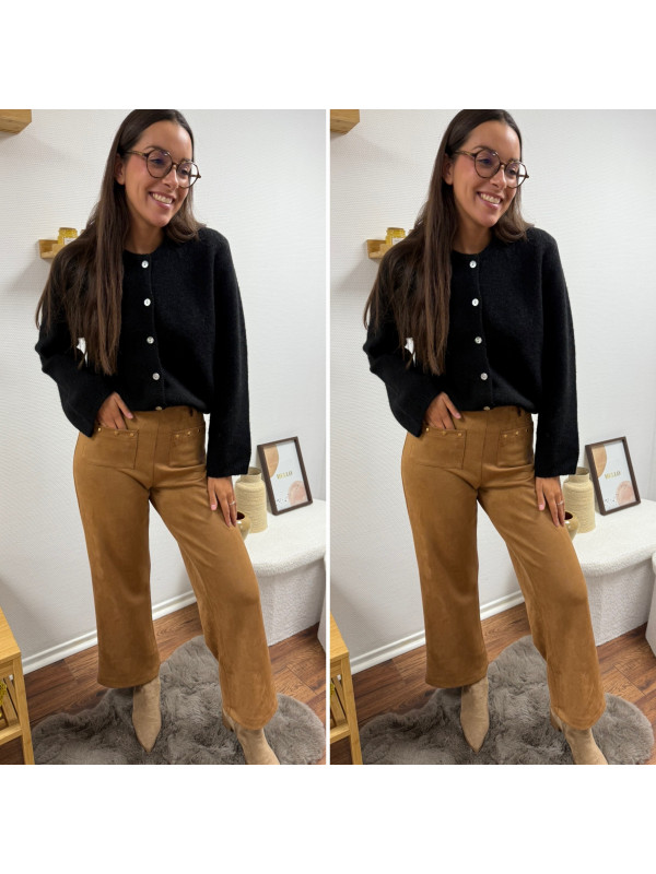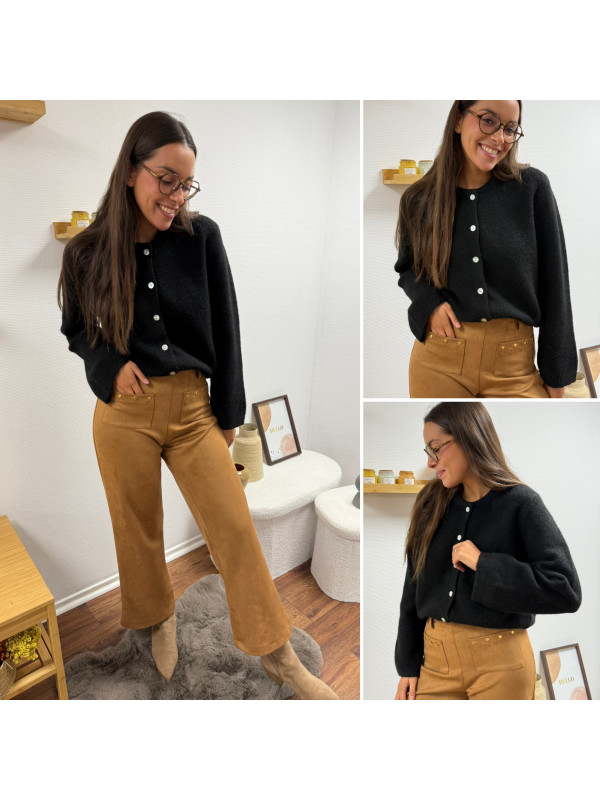 Gilet épais noir avec boutons nacrés et manches évasées