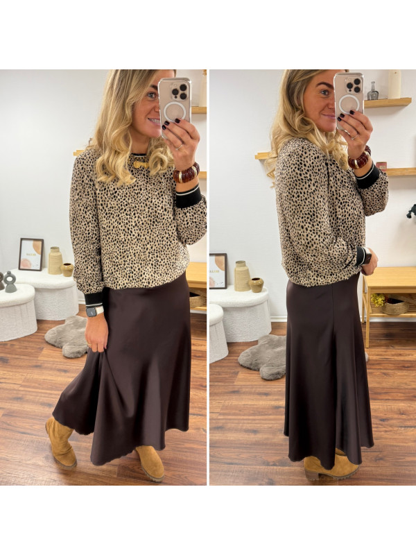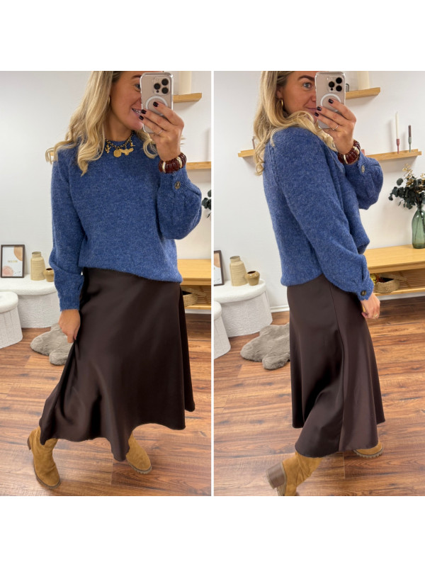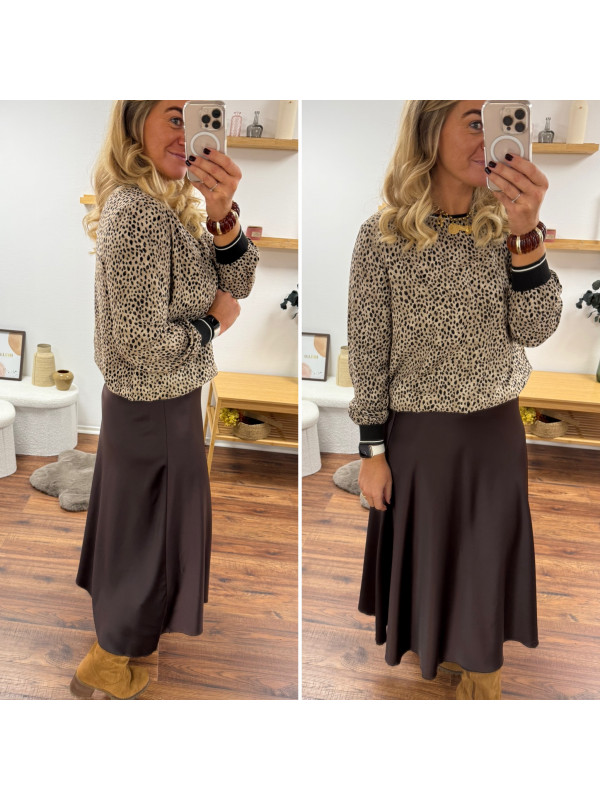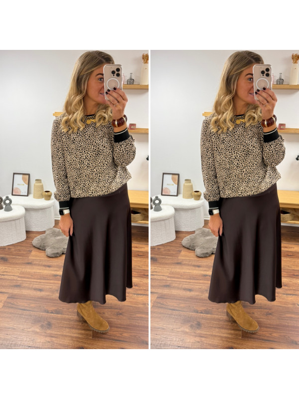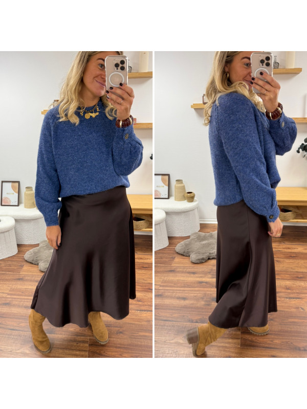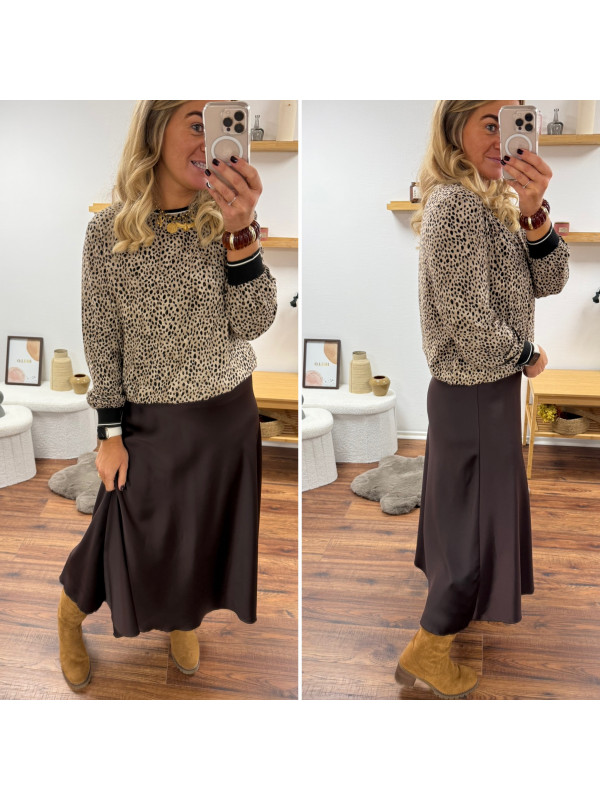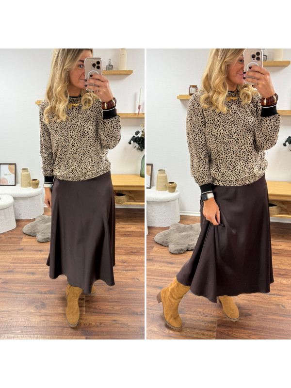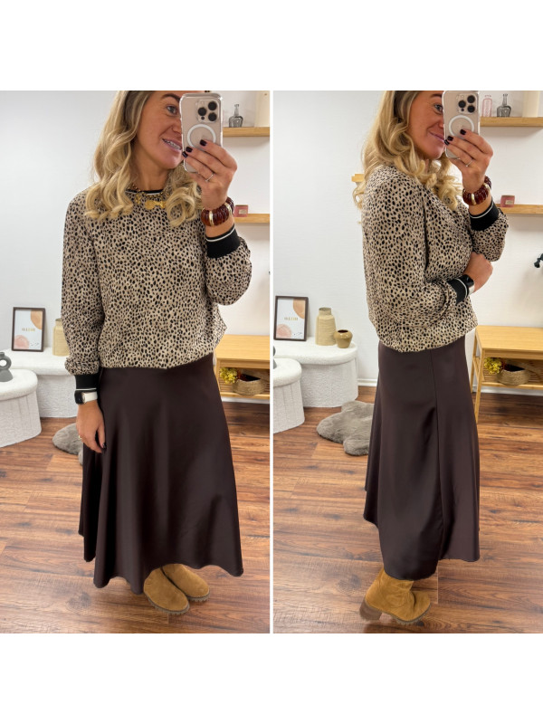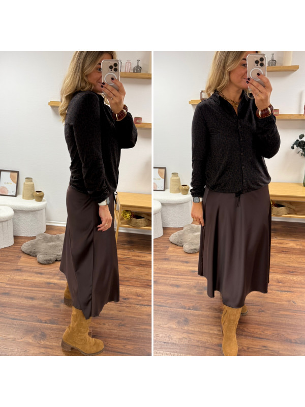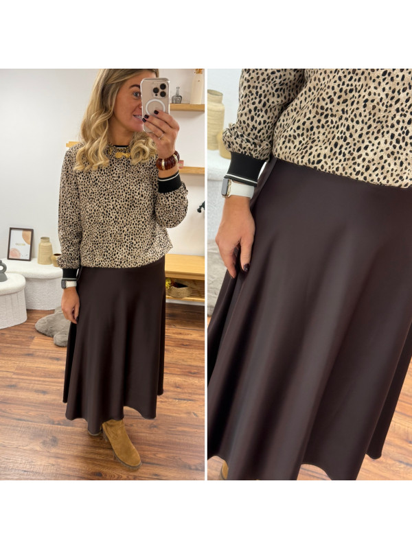 Jupe longue satinée couleur chocolat