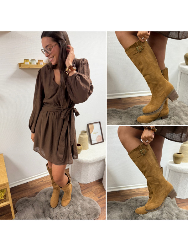 Bottes camel en suédine effet daim à talons et semelles crantées