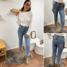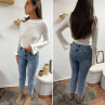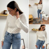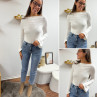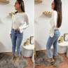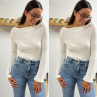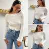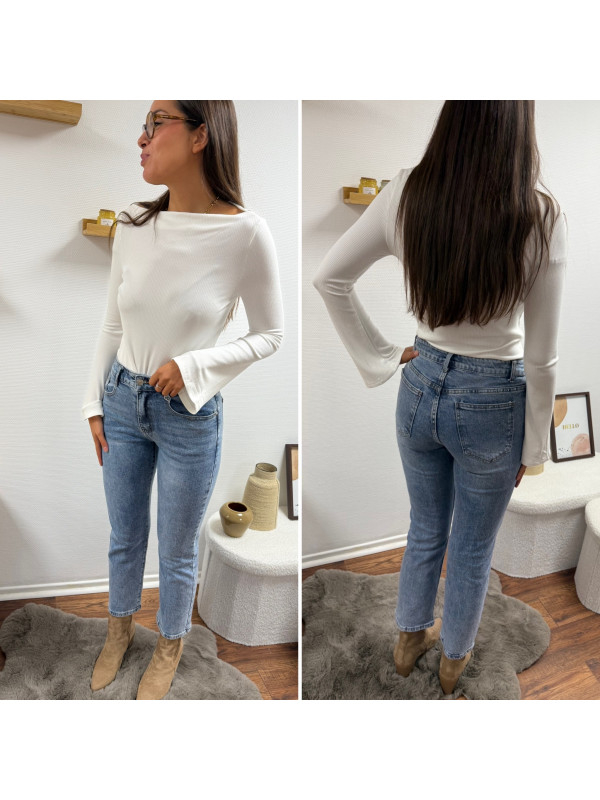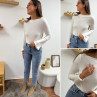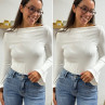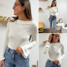 Tee shirt blanc en tissu côtelé avec manches évasées
