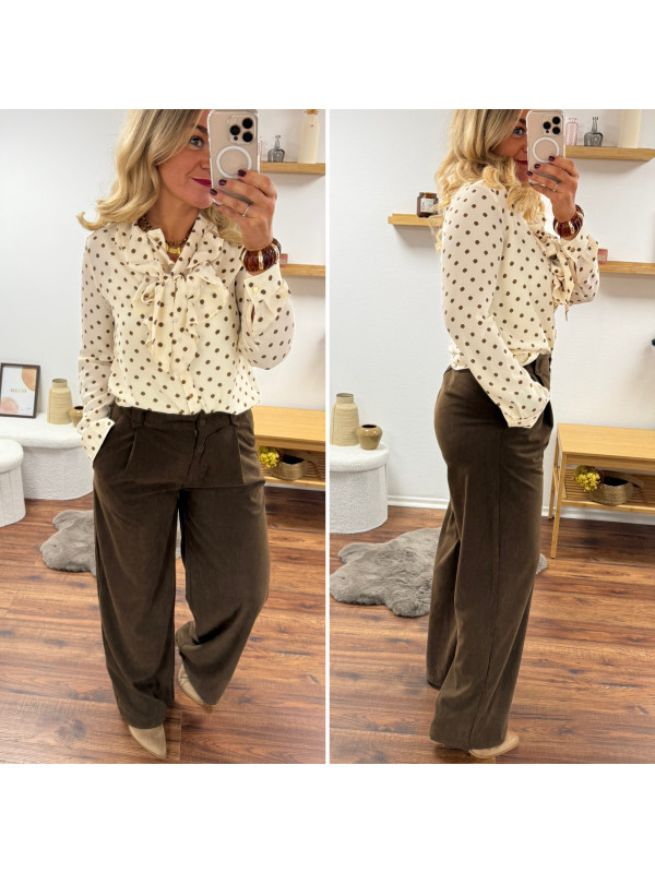 Pantalon fluide en velours à pinces chocolat Le S équivaut au...