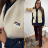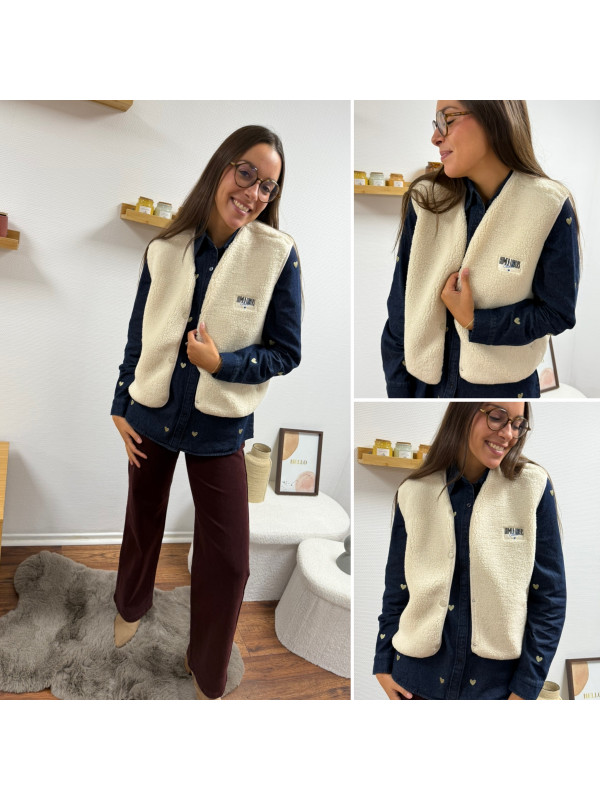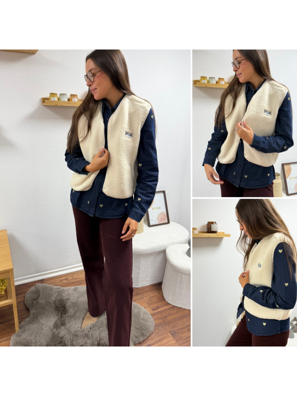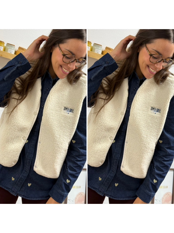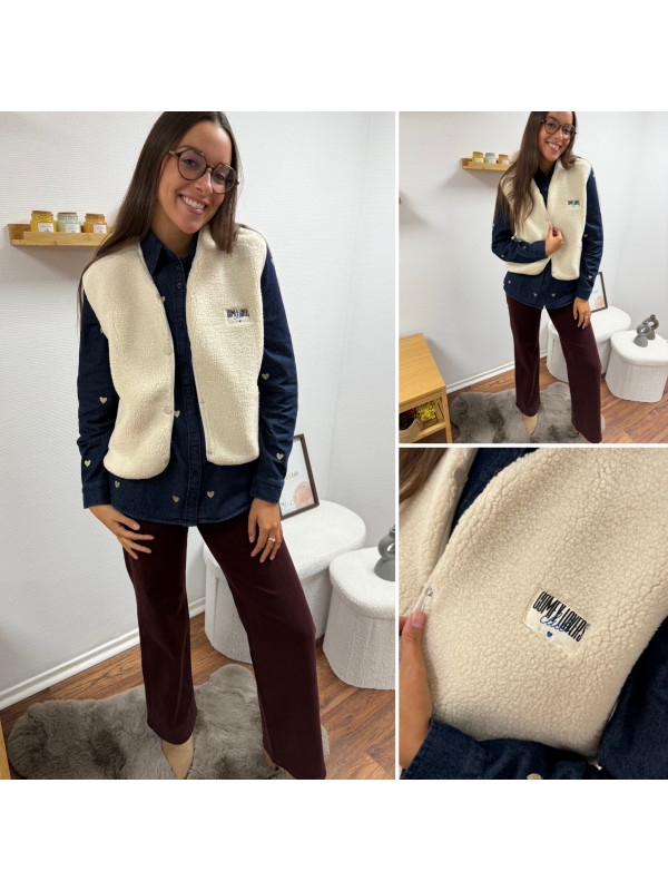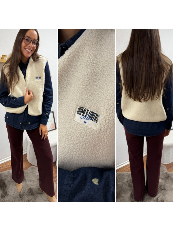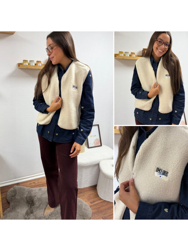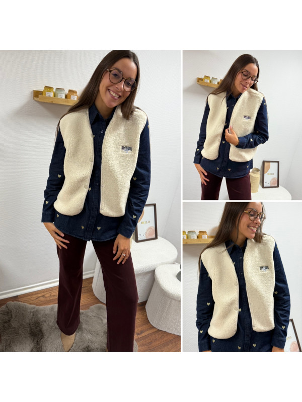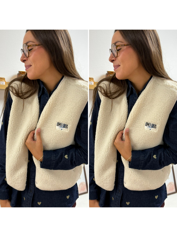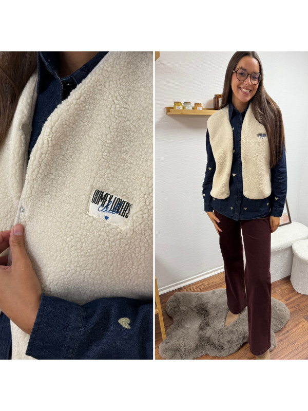 Gilet/veste sans manches à bouclettes avec logo "comfy lovers club"