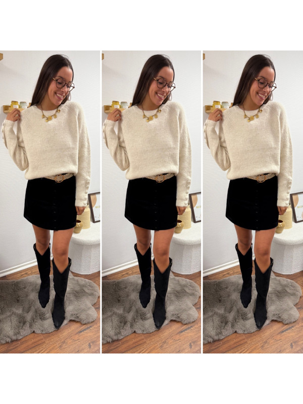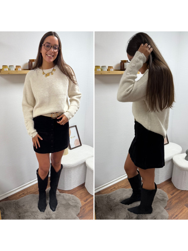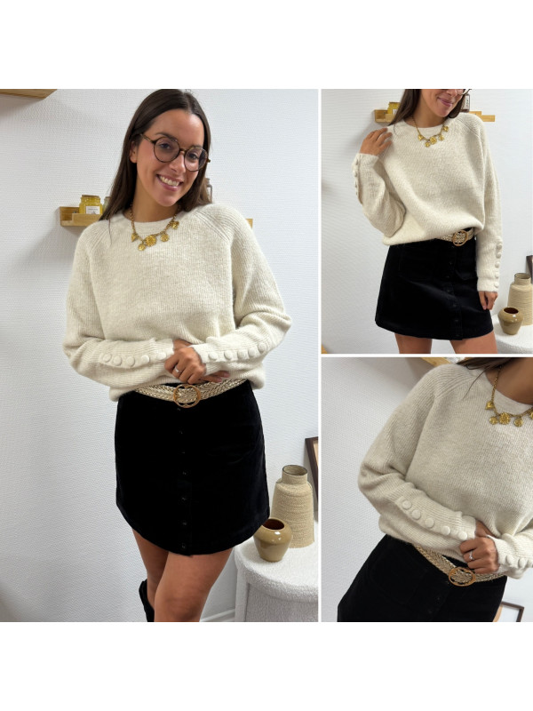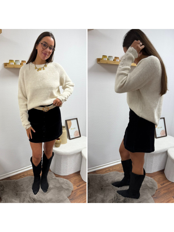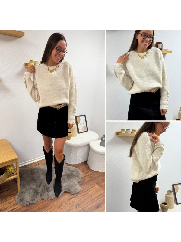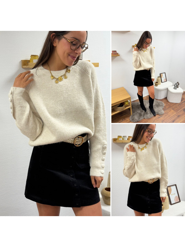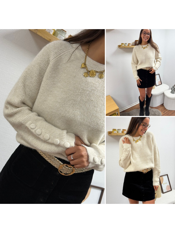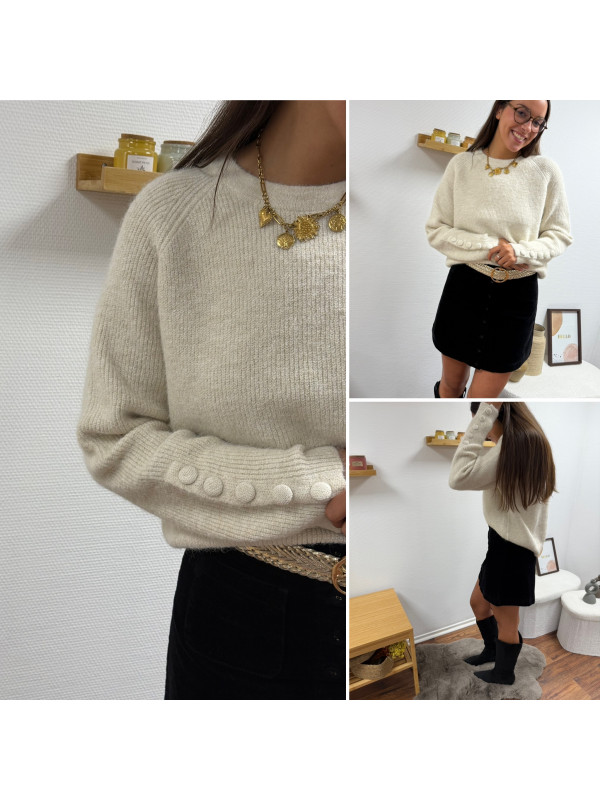 Pull écru avec boutons écrus sur les manches