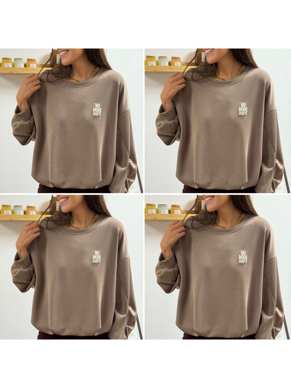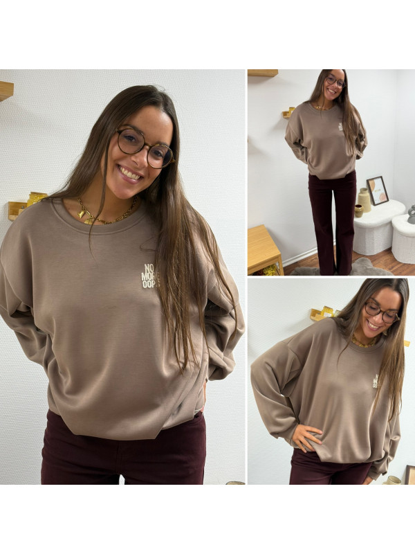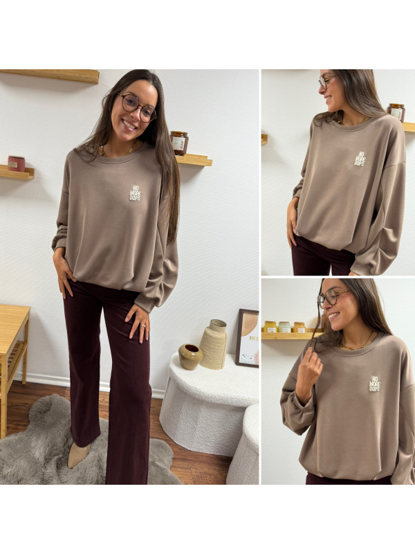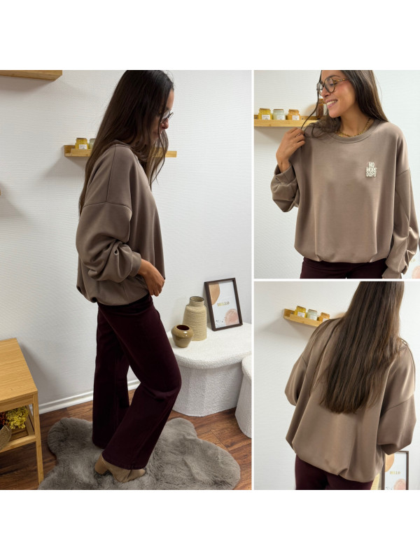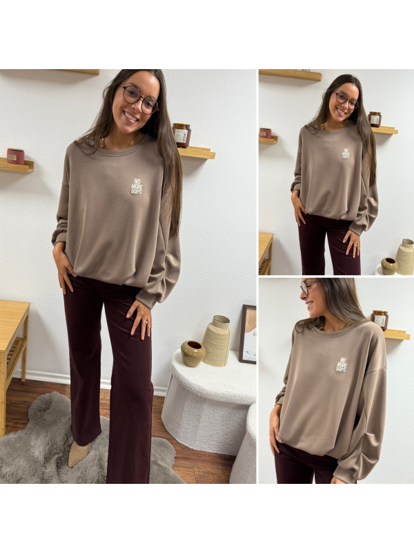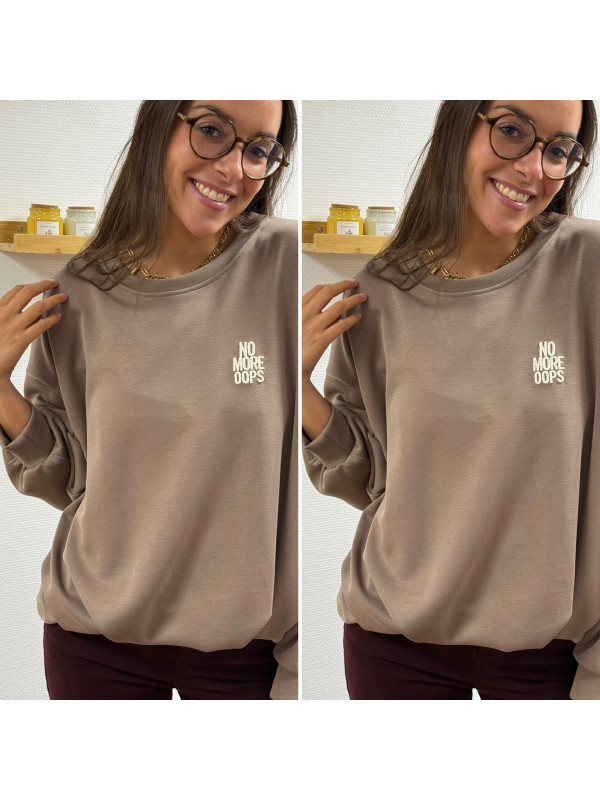 Sweat resserré en bas et aux manches avec logo no more oops camel