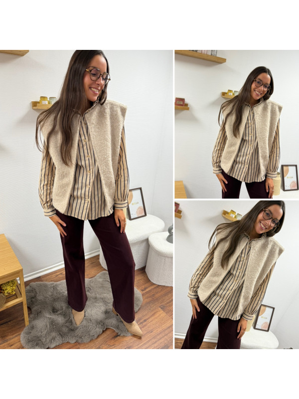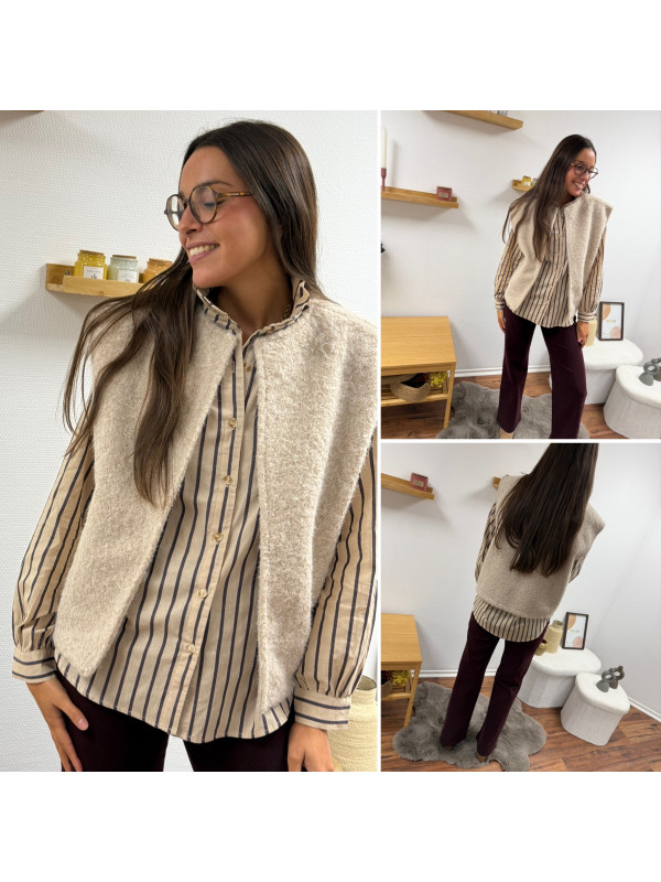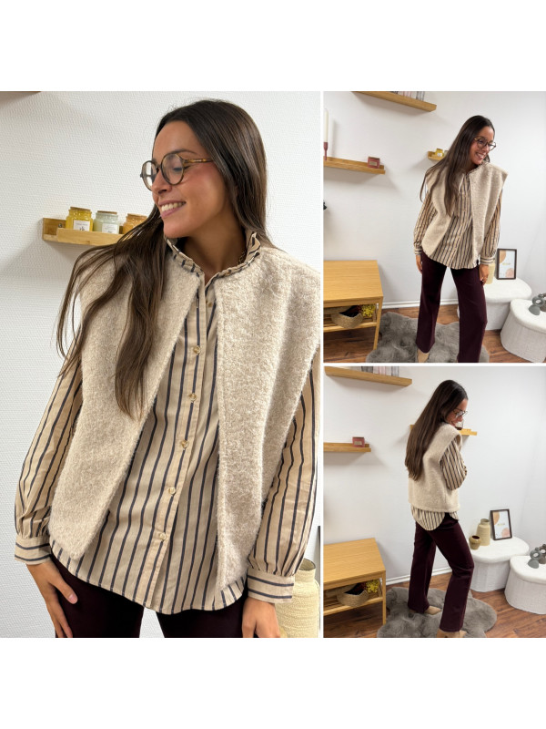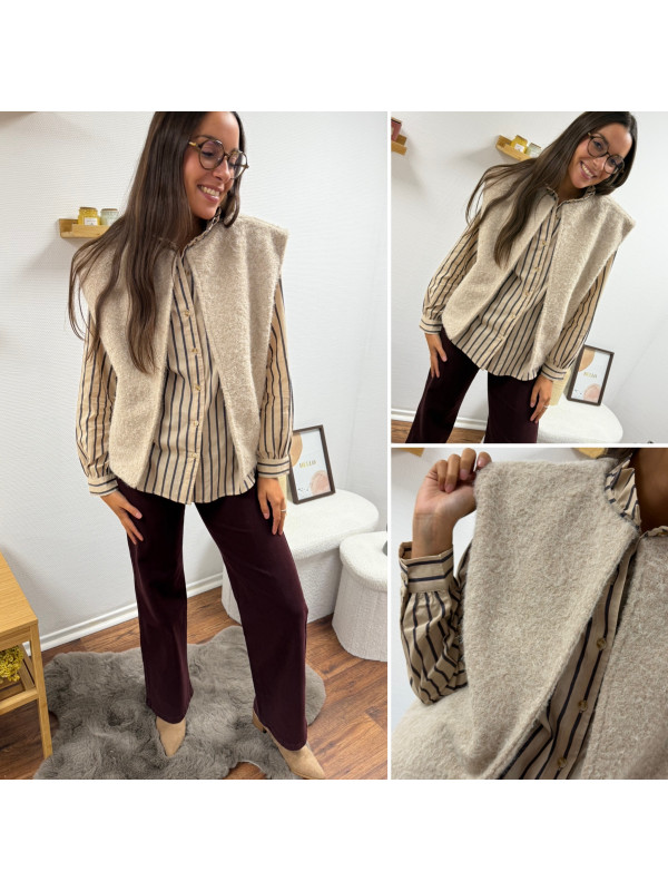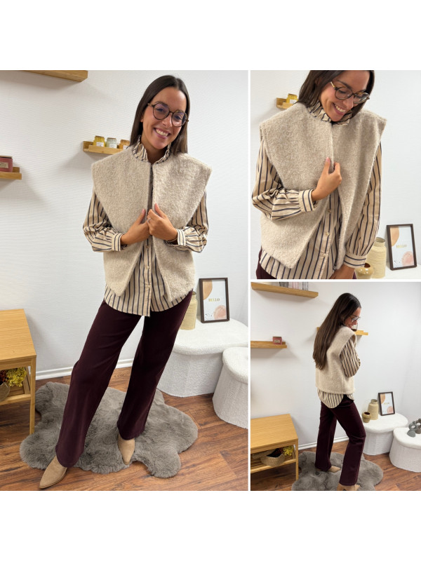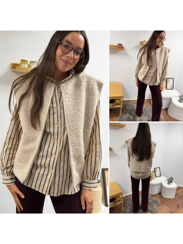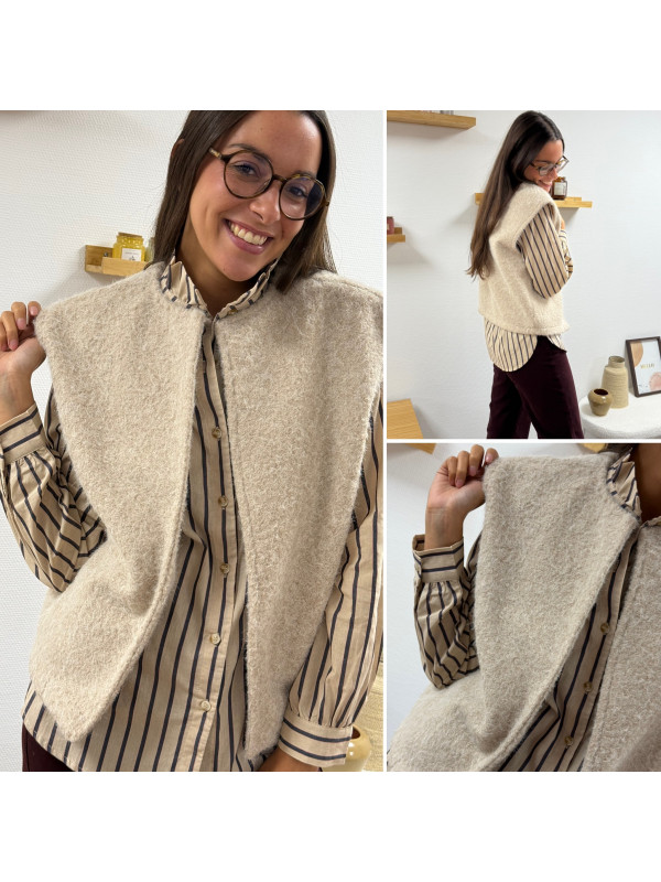 Veste sans manche façon laine bouillie beige
