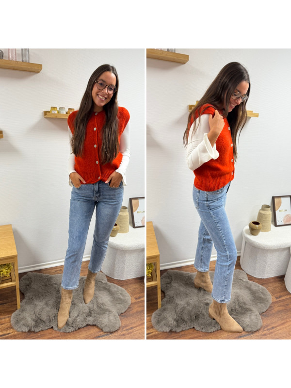Jean denim Disponible du 34 au 42. Le modèle mesure 1,72m et...