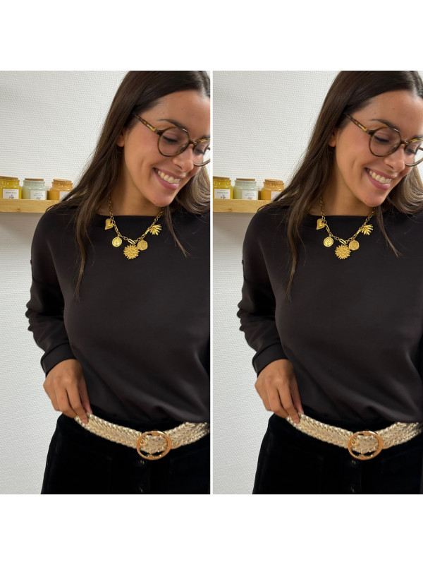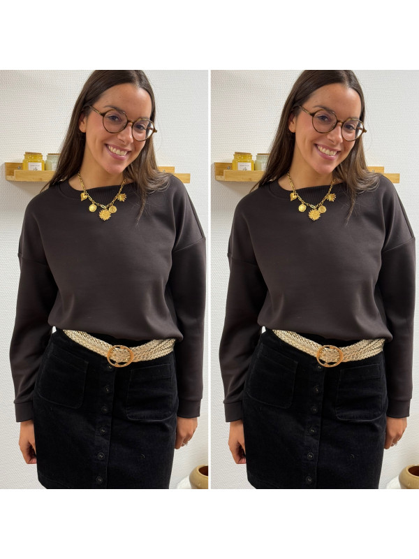 Sweat noir avec petit dessin en V dans le col (du 36 au 46)