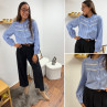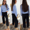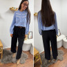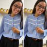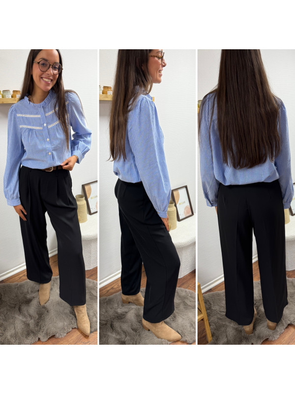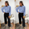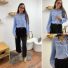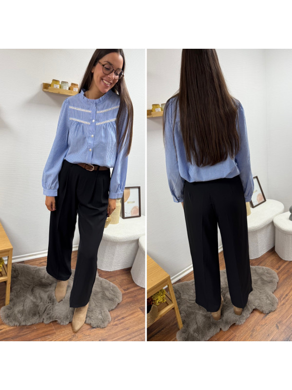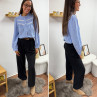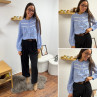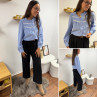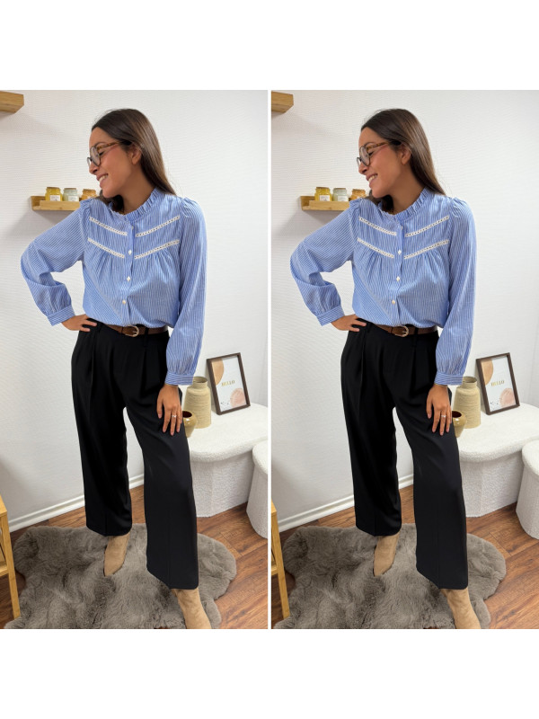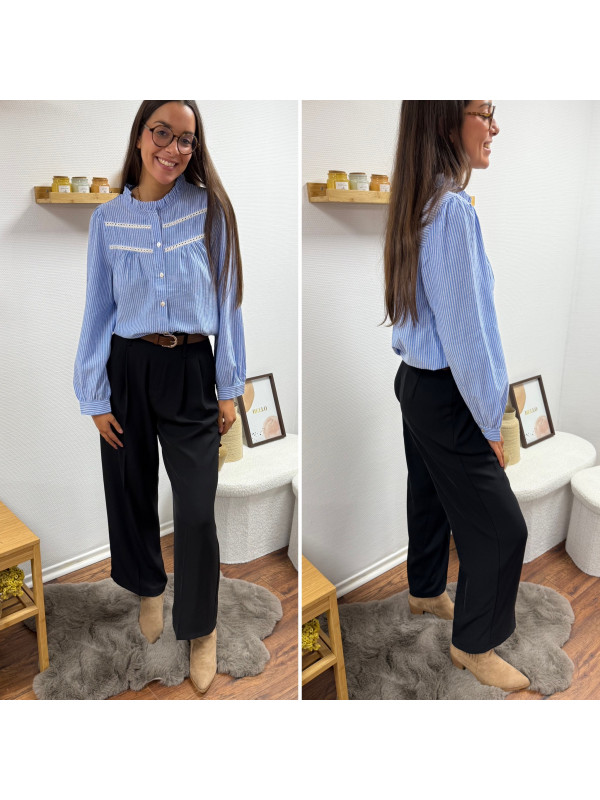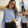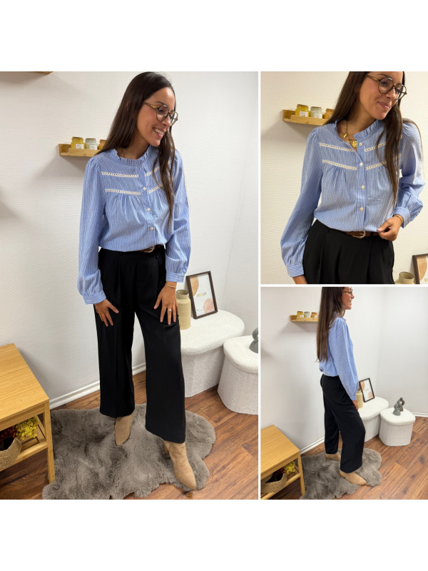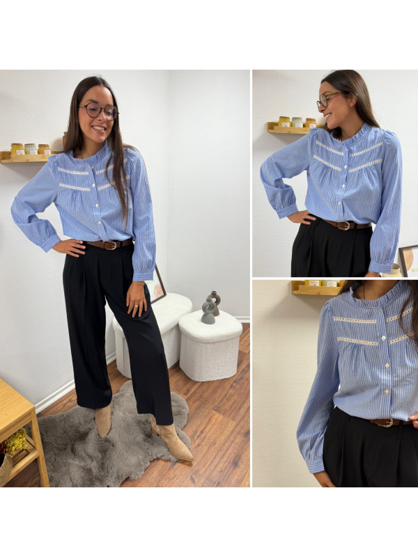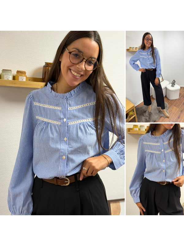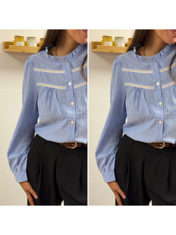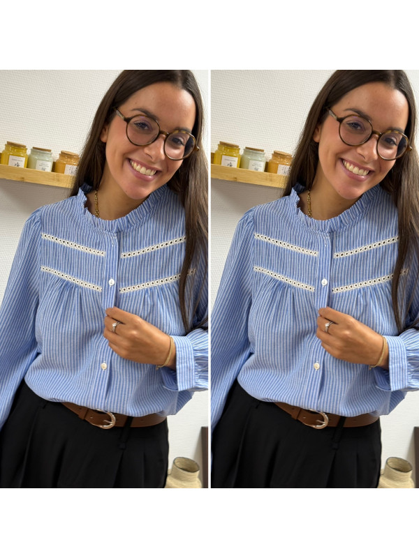 Blouse bleu ciel rayée avec 2 lignes ajourées