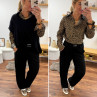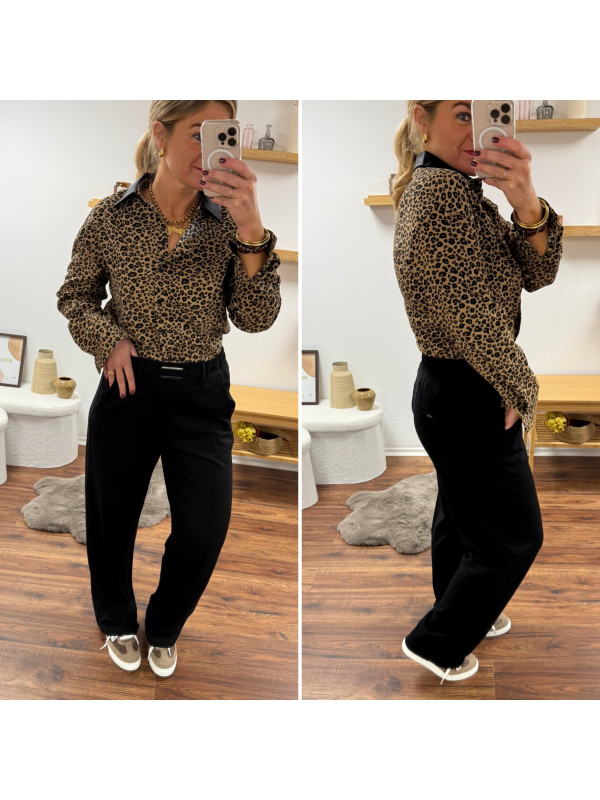 Pantalon noir avec taille élastiquée et fausse ceinture (du 36...