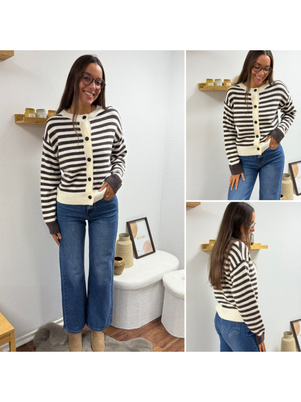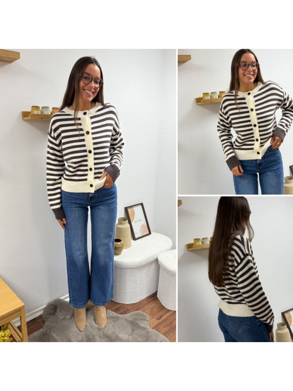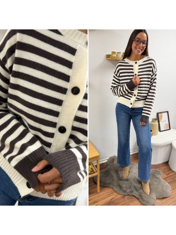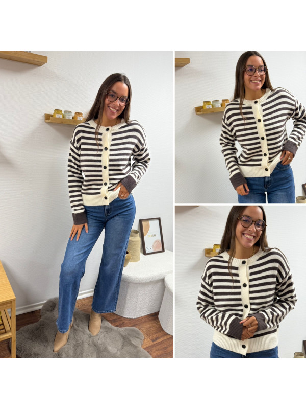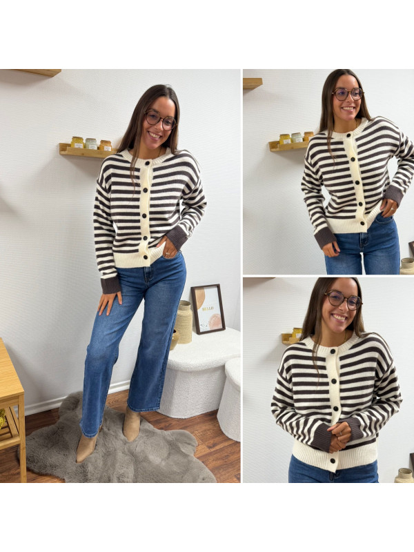 Gilet rayé chocolat et blanc