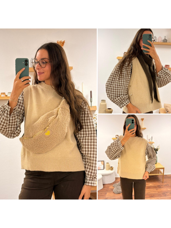 Pull sans manches beige avec boutons sur les côtés (du 36 au...