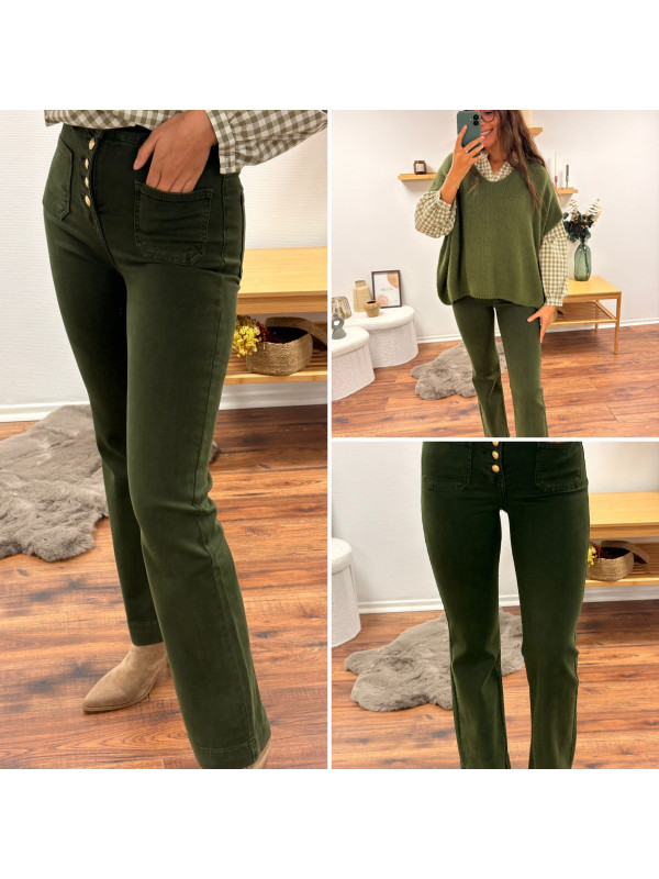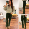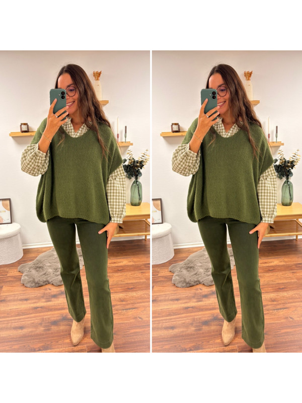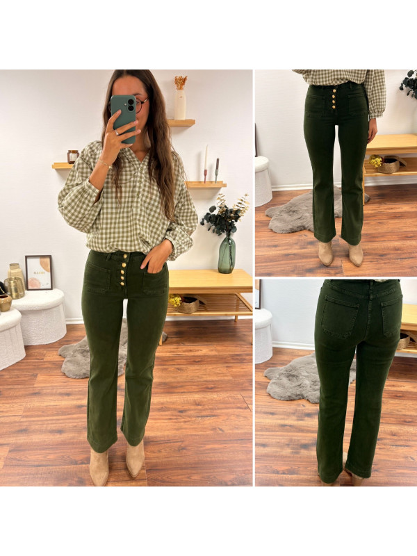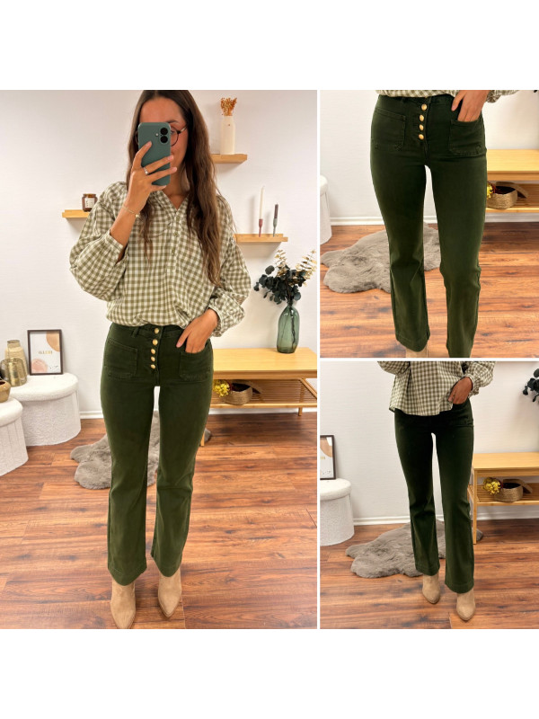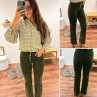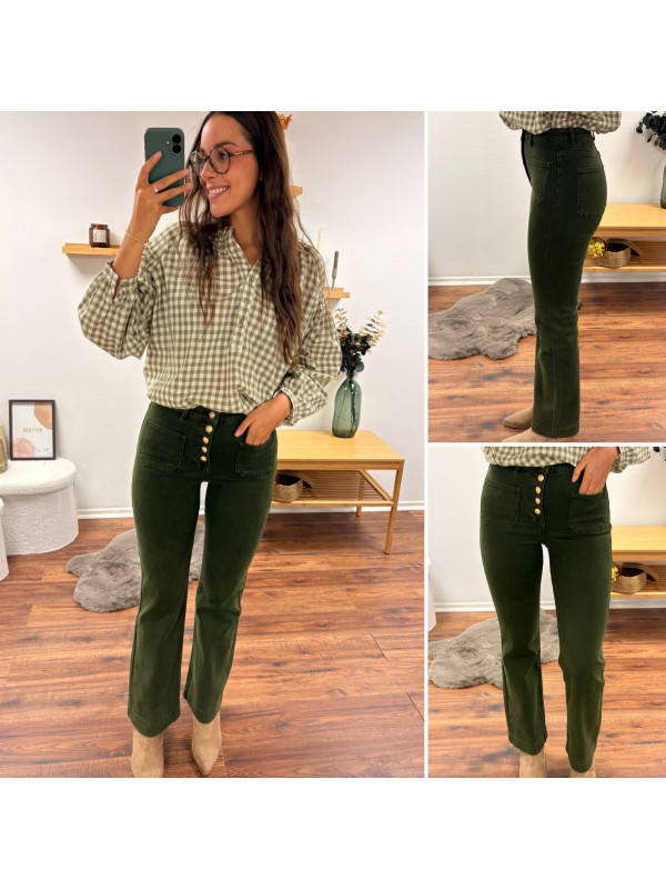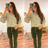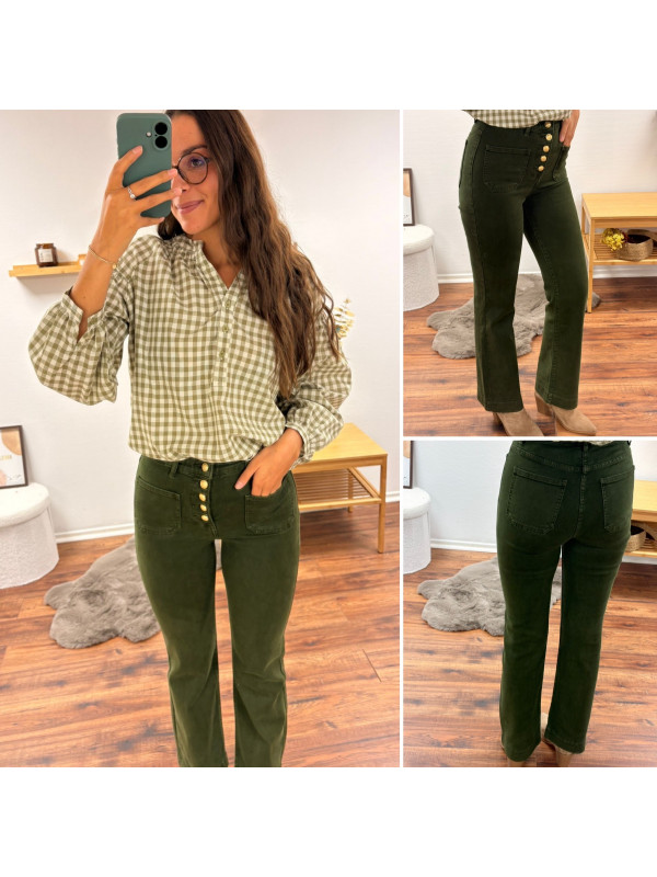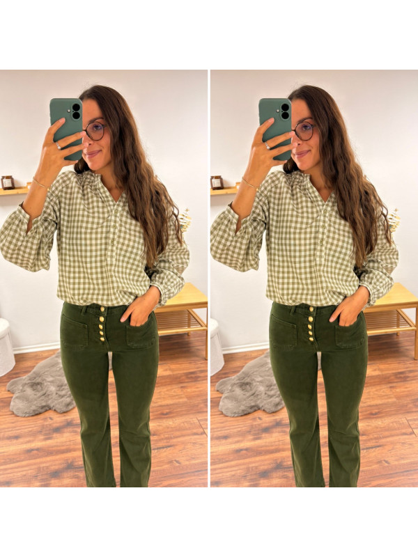 Blouse écrue à carreaux kaki à manches ballons Le SM équivaut...