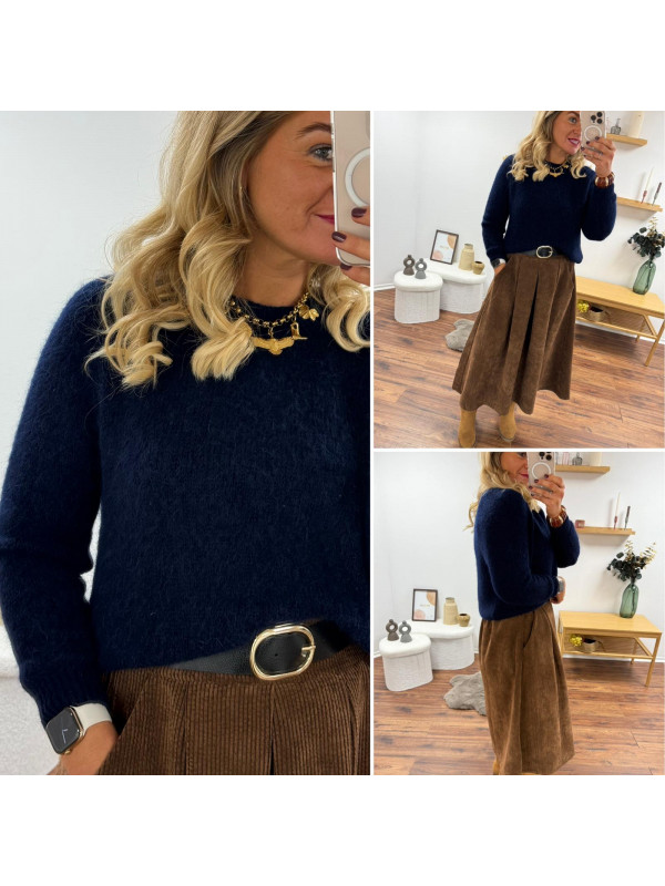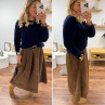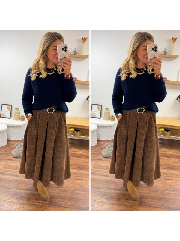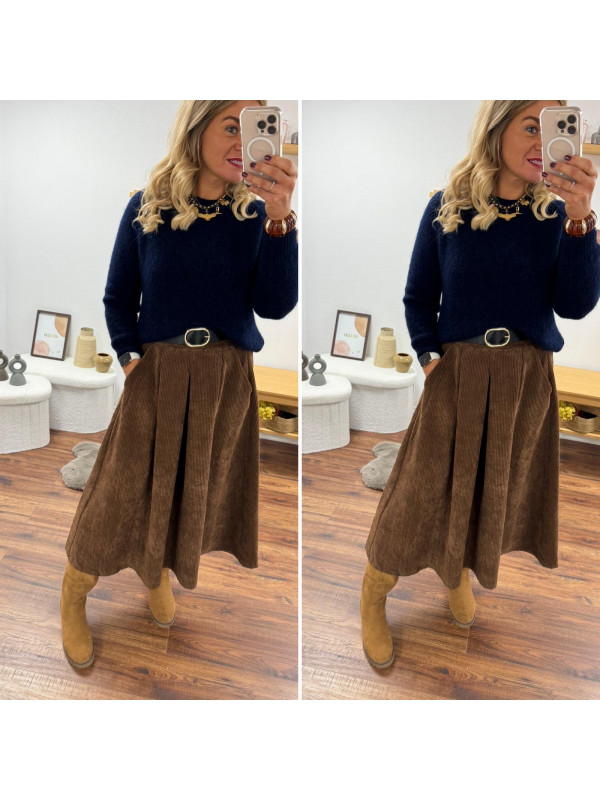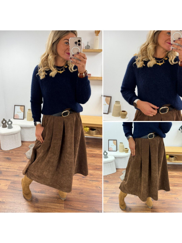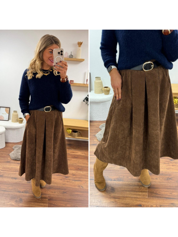 Jupe camel mi longue en velours avec ceinture en similicuir...