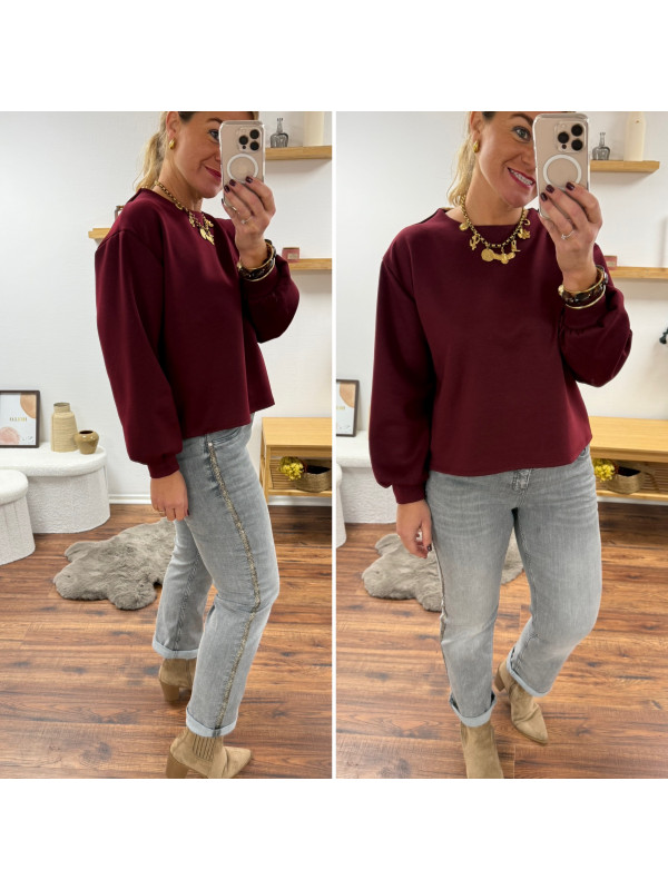 Tee shirt épais tout doux façon sweat léger bordeaux resserrés...