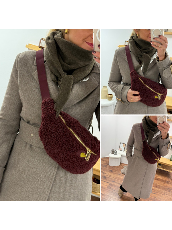 Sac banane moumoute bordeaux avec petit coeur brodé doré