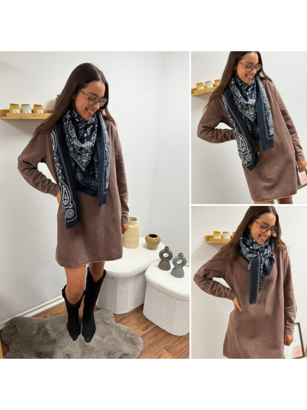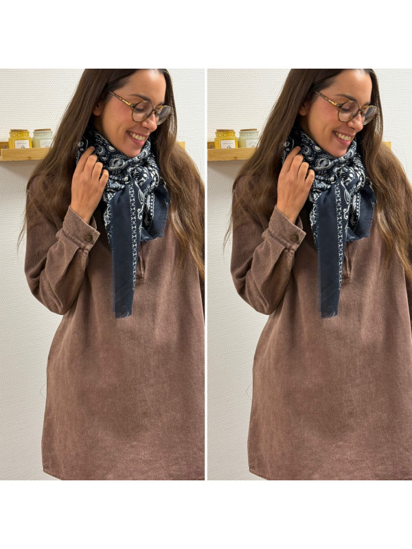 Grosse étole imprimé toile de jouy bleu nuit (uniquement dispo en boutique)