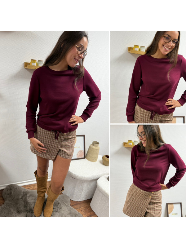 Sweat bordeaux/cassis avec cordon à la taille (du 36 au 46)