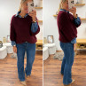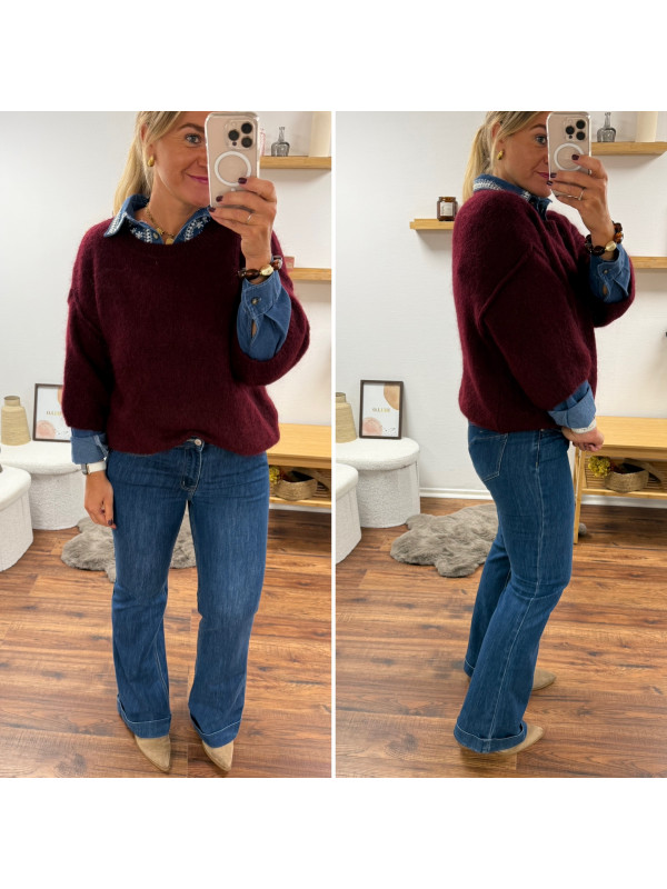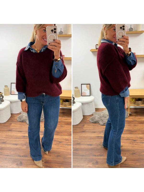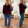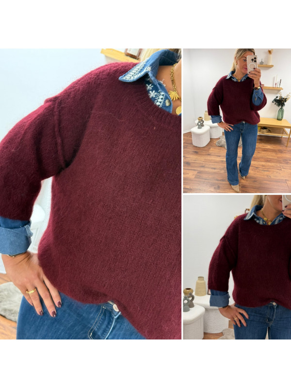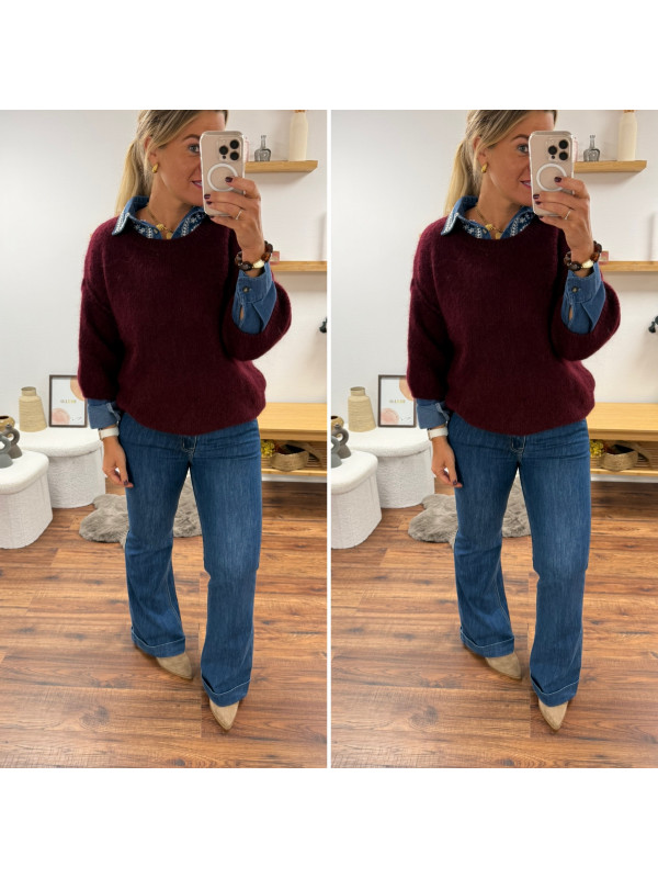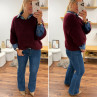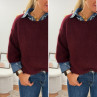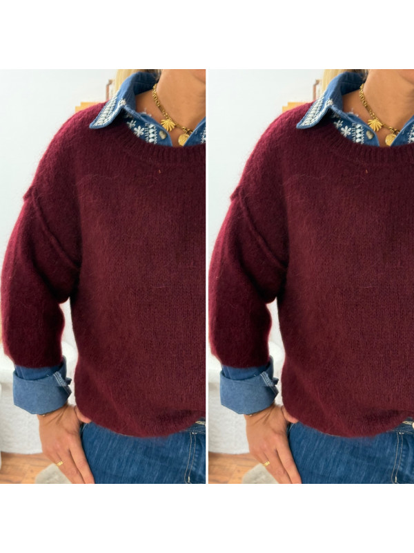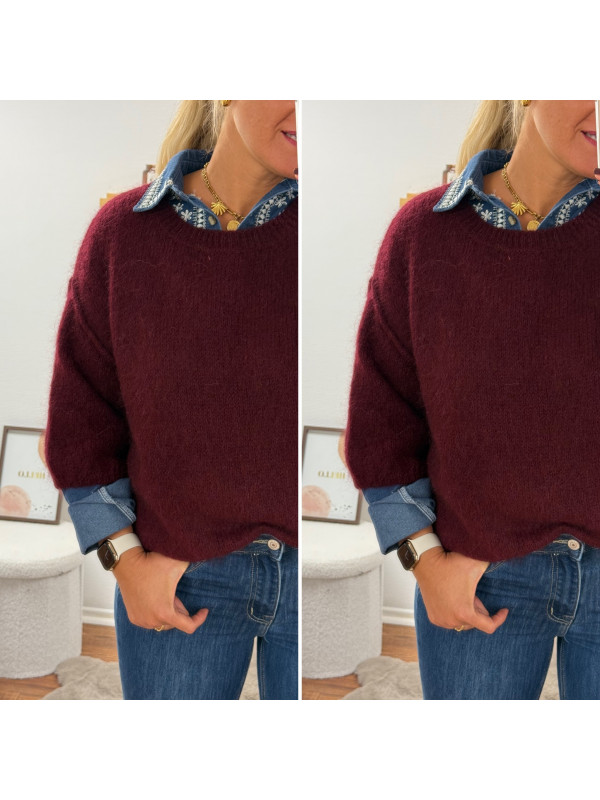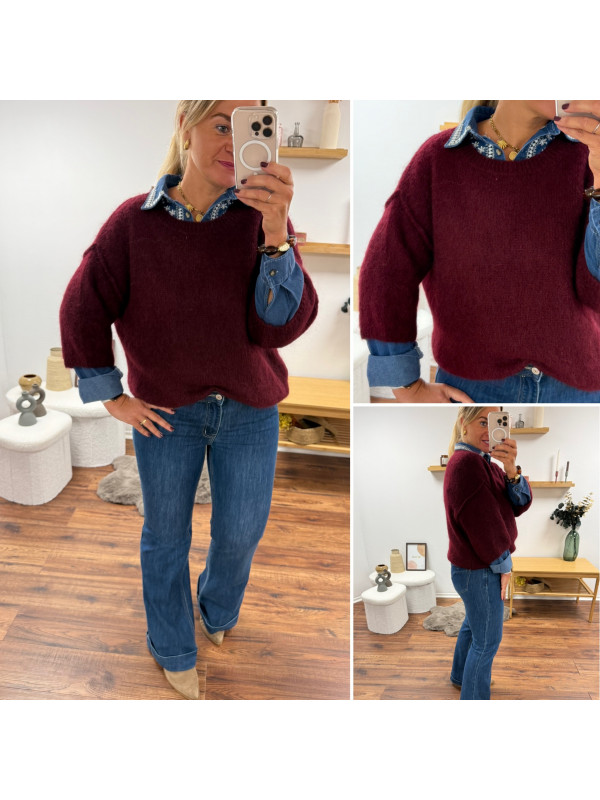 Pull manches 3/4 bordeaux avec grosse couture à l'épaule