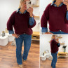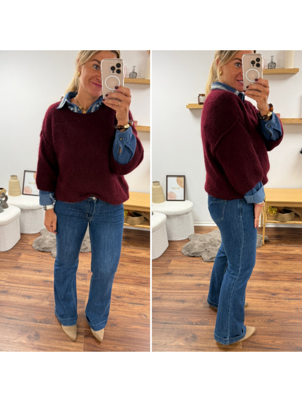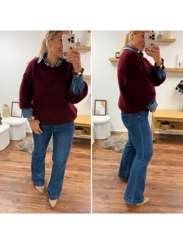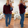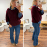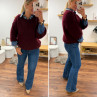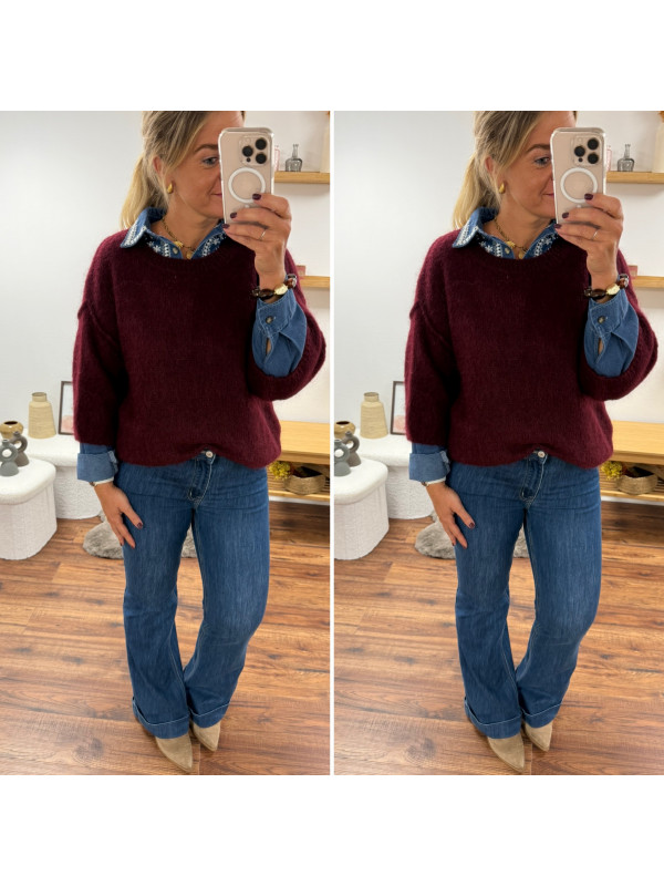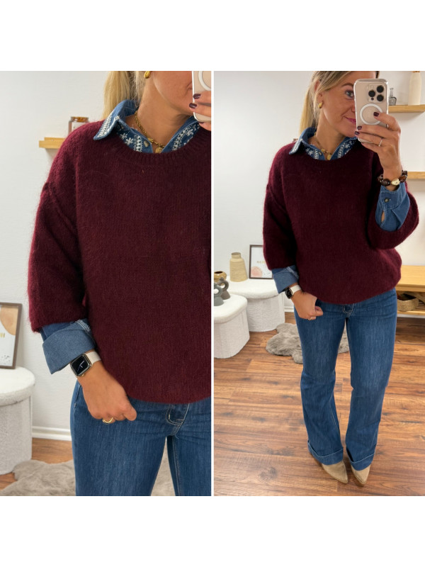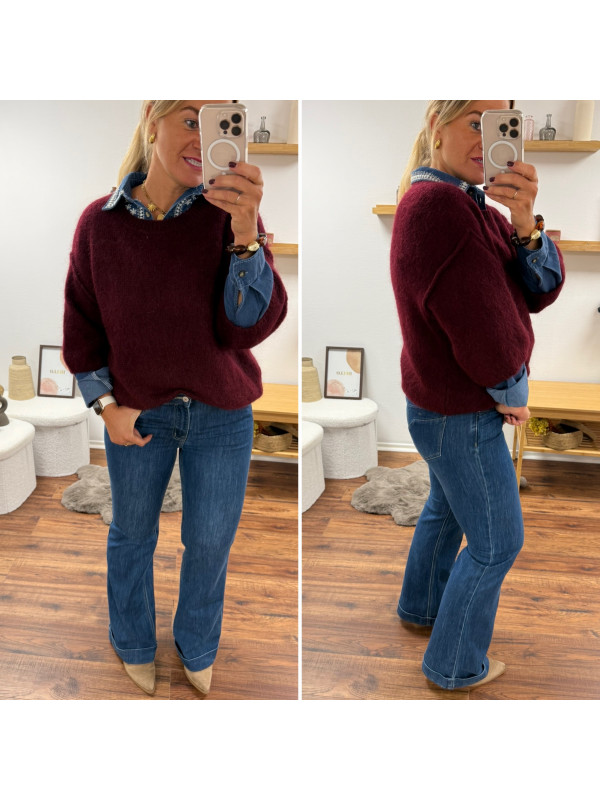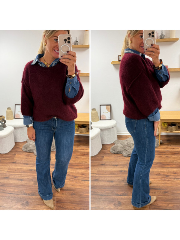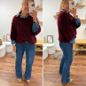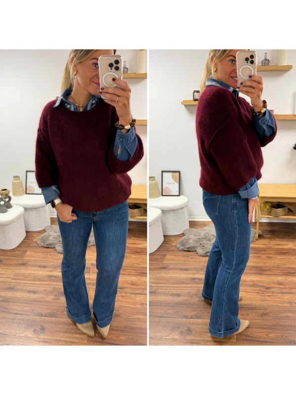 Pull manches 3/4 bordeaux avec grosse couture à l'épaule