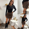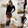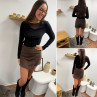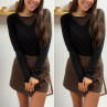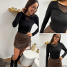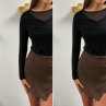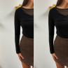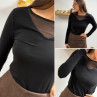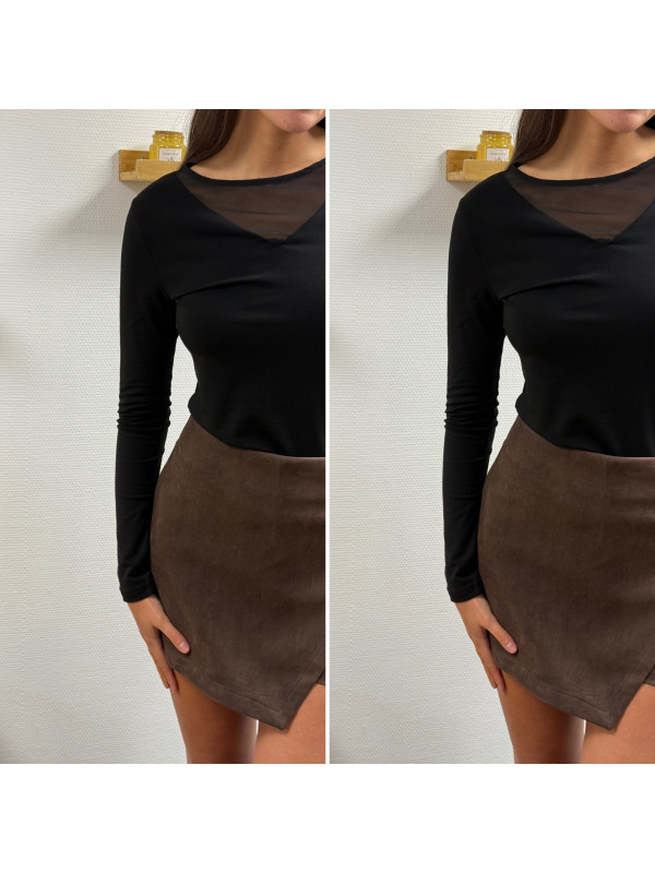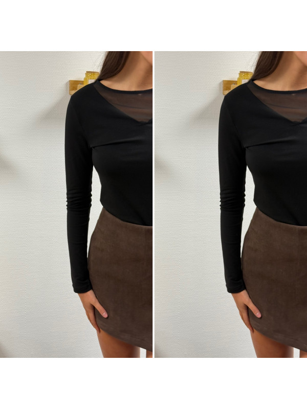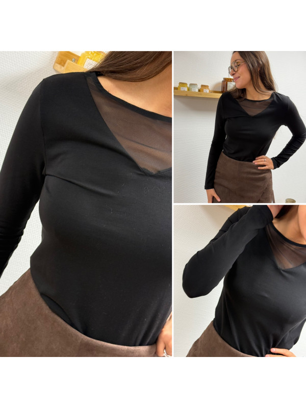 Tee shirt noir manches longues avec col V en résille (du 36 au 46)