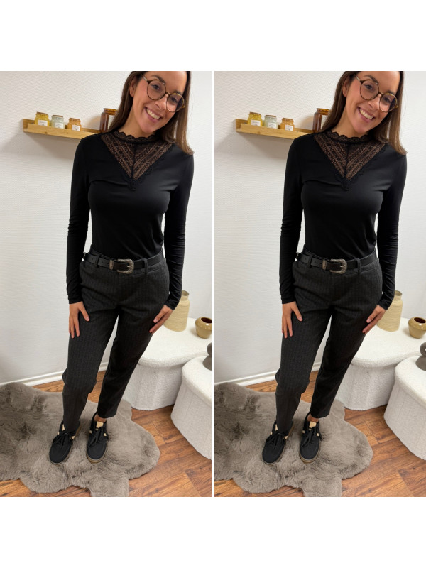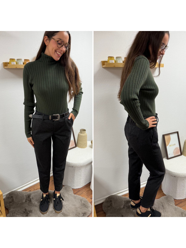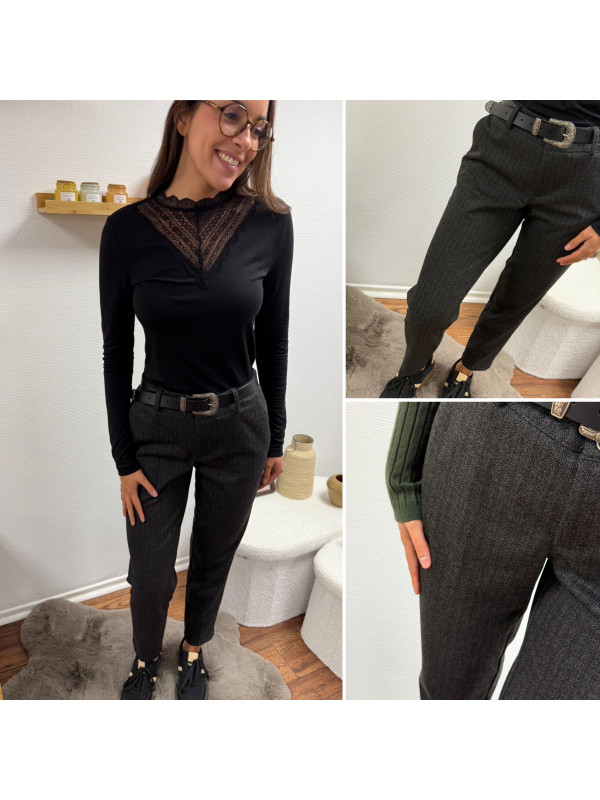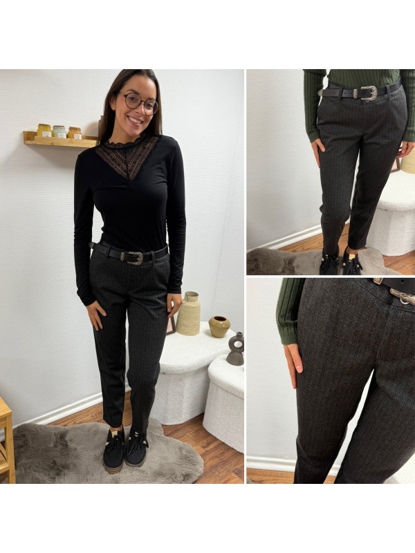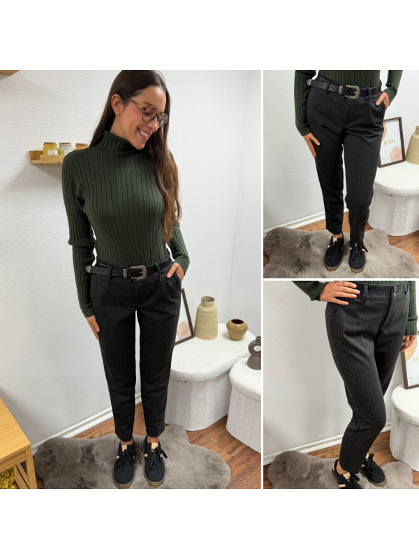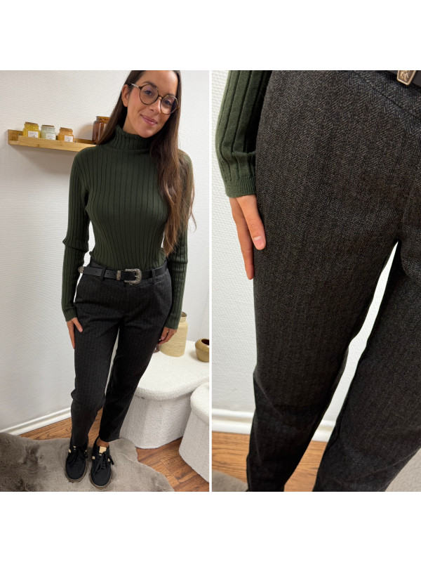 Pantalon gris anthracite en tweed à double boutons argentés élastiqué à la taille (du 36 au 46)