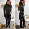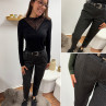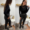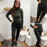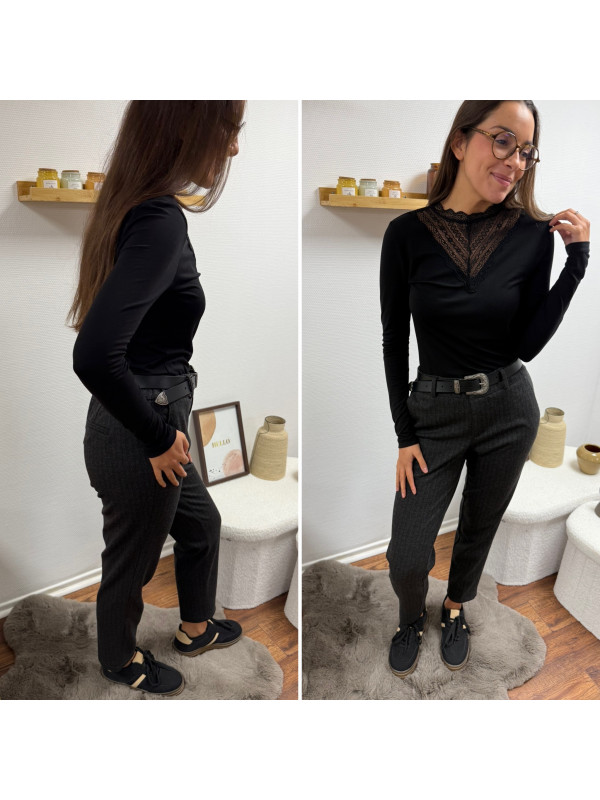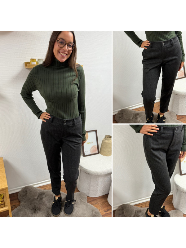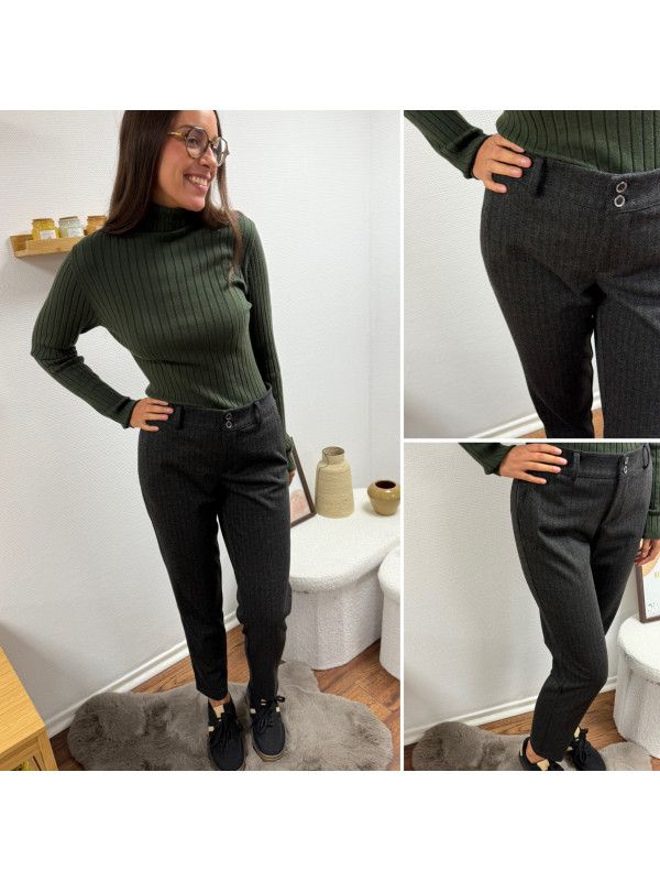 Pantalon gris anthracite en tweed à double boutons argentés (du 36 au 46)